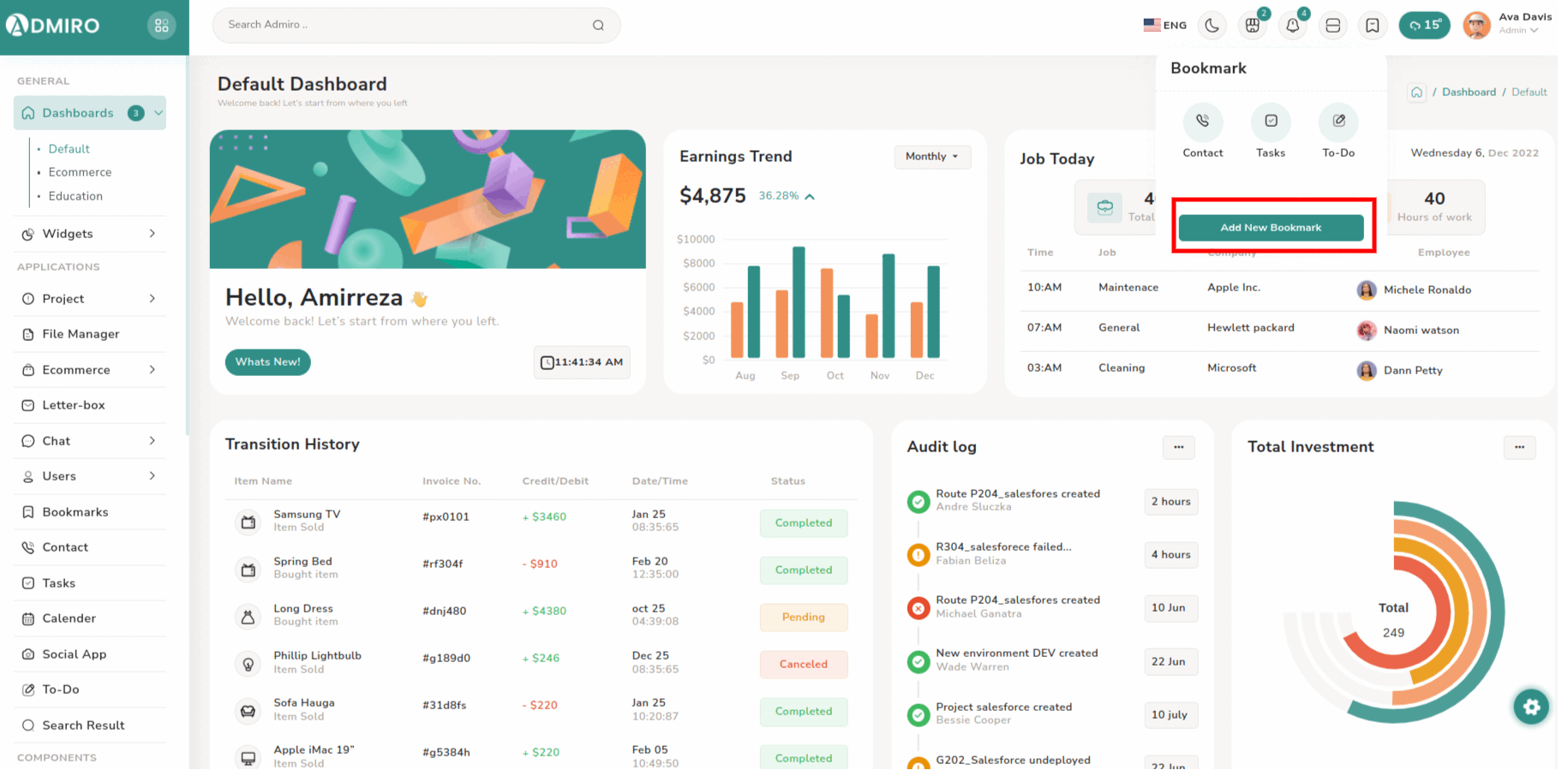 There will are numerous pages in this theme, and it might be a bit difficult to navigate arround. To solve this we have added bookmark app, where you can bookmark the pages you visit the most within the theme, and quickly access them.