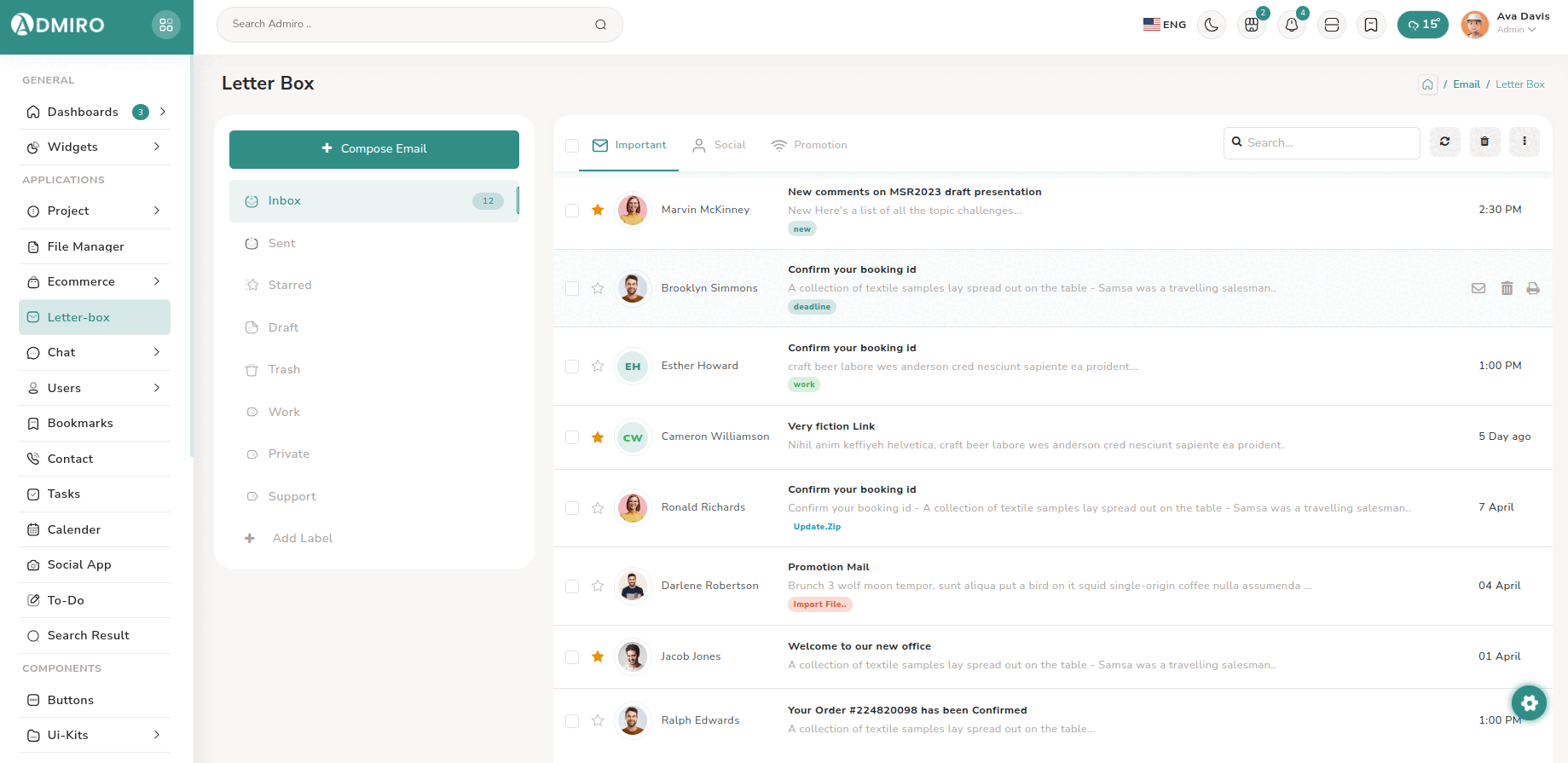 To keep things professional you can add integrate the Letter box application with this theme, to share the important information with your colleagues. We have provided a design for the Letter box application, you can use it and build a fully functional Letter box application.