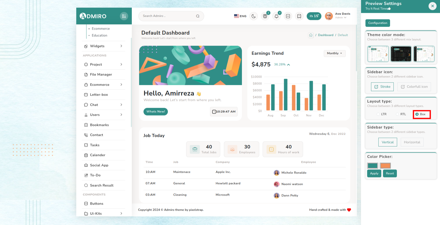 There are 3 layout types in our theme: LTR,RTL and Boxed layout.