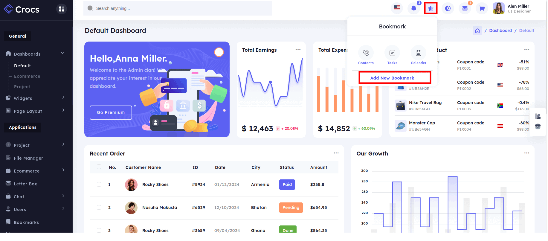 There will are numerous pages in this theme, and it might be a bit difficult to navigate arround. To solve this we have added bookmark app, where you can bookmark the pages you visit the most within the theme, and quickly access them.