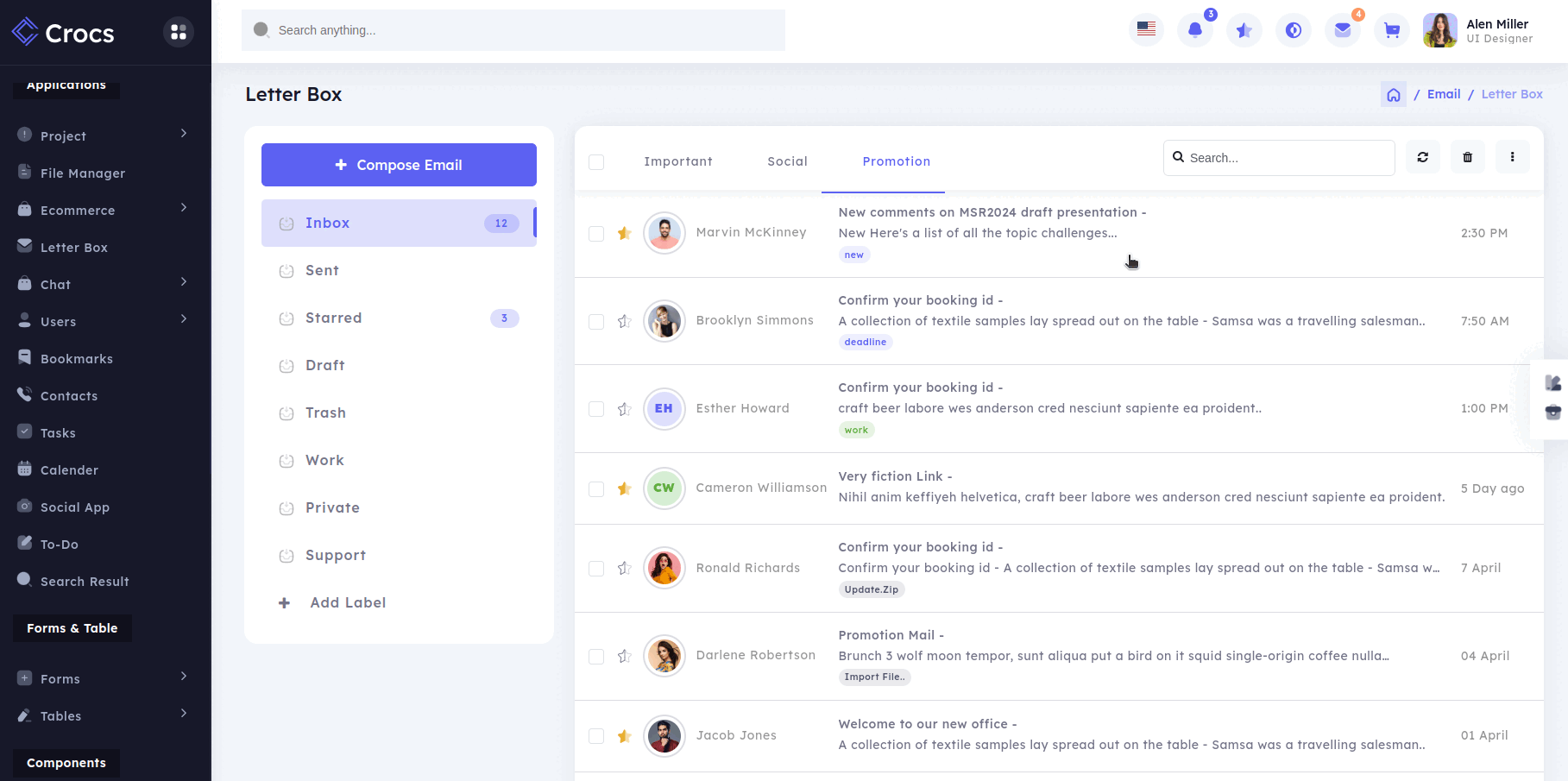 Preview linkTo keep things professional you can add integrate the Letter box application with this theme, to share the important information with your colleagues. We have provided a design for the Letter box application, you can use it and build a fully functional Letter box application.