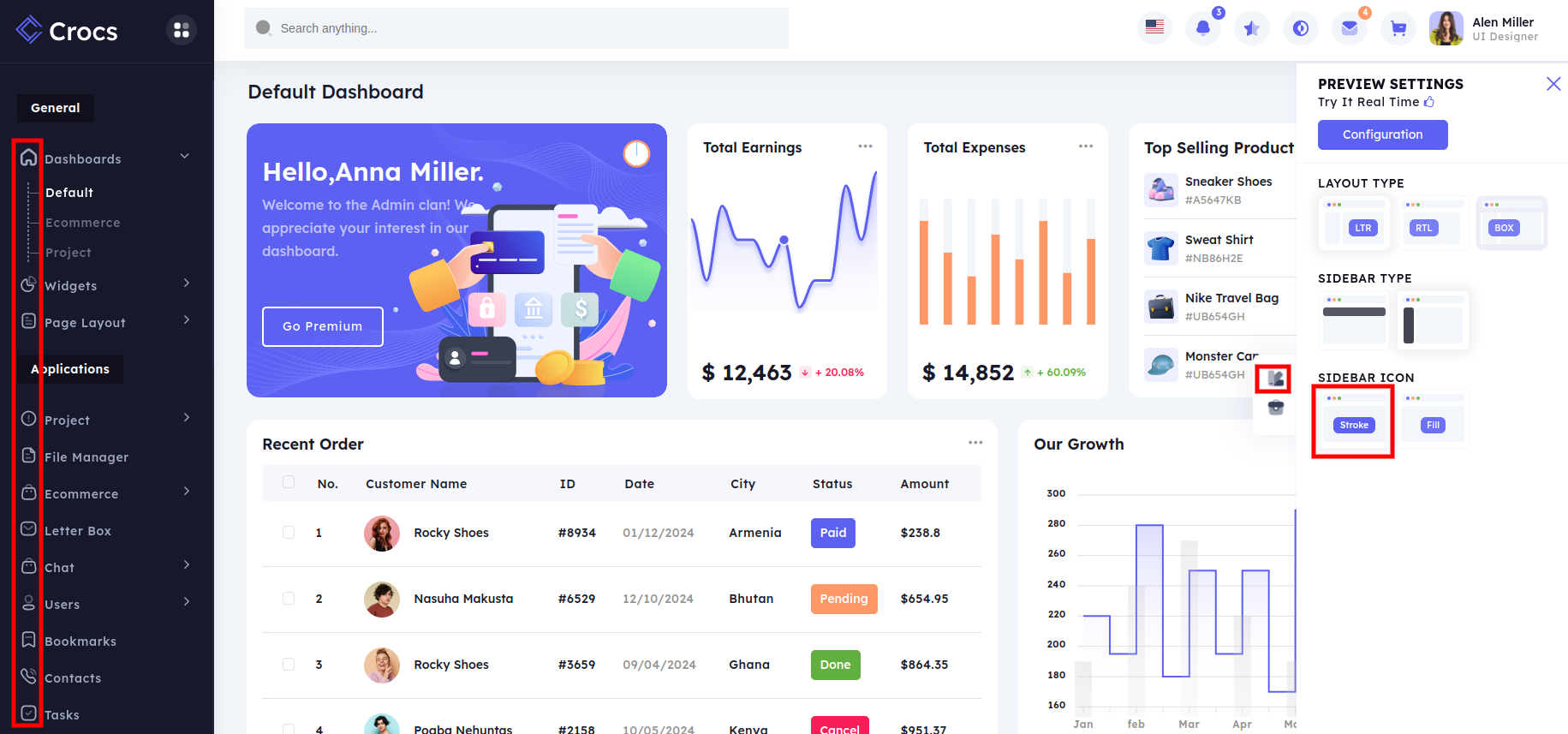 If you like a particular type of sidebar and want to use that one in you website, then just copy the sidebar.scss file and add the necessary class to the sidebar-layout property in theme>src>shared>services>layout.service.ts file.