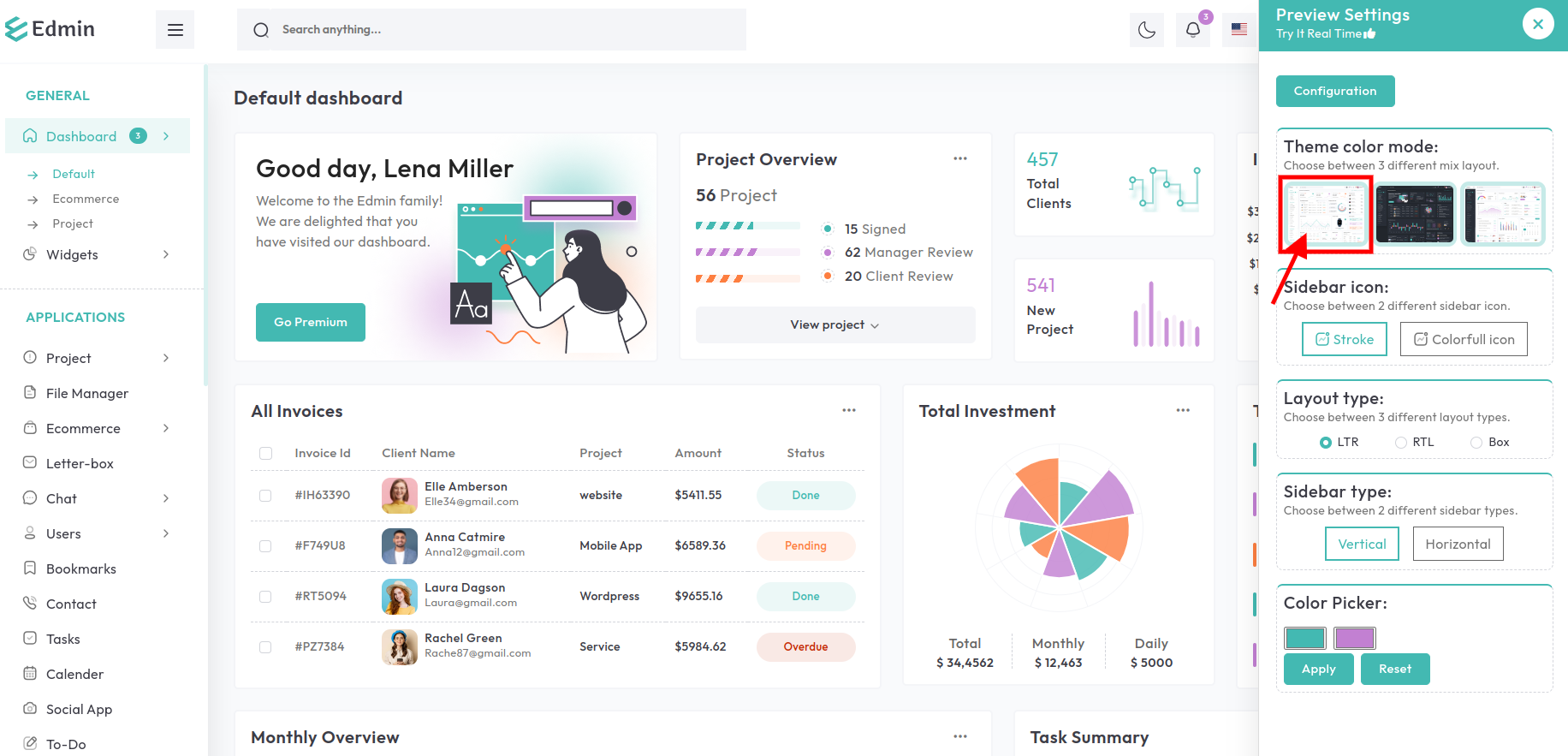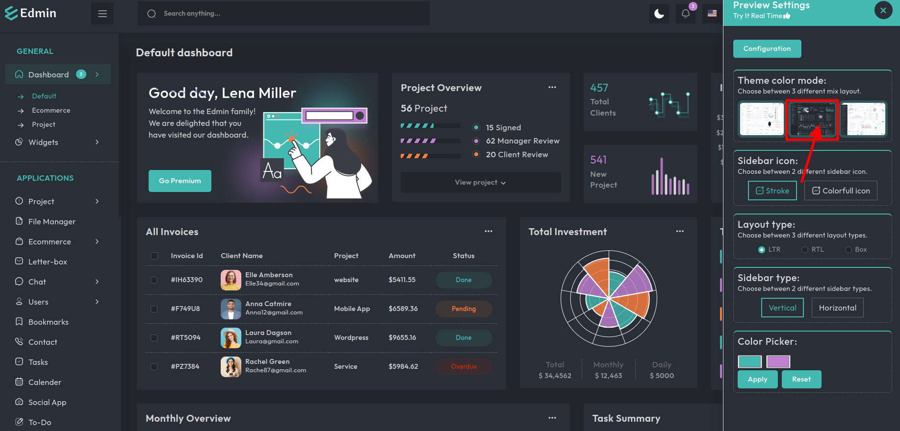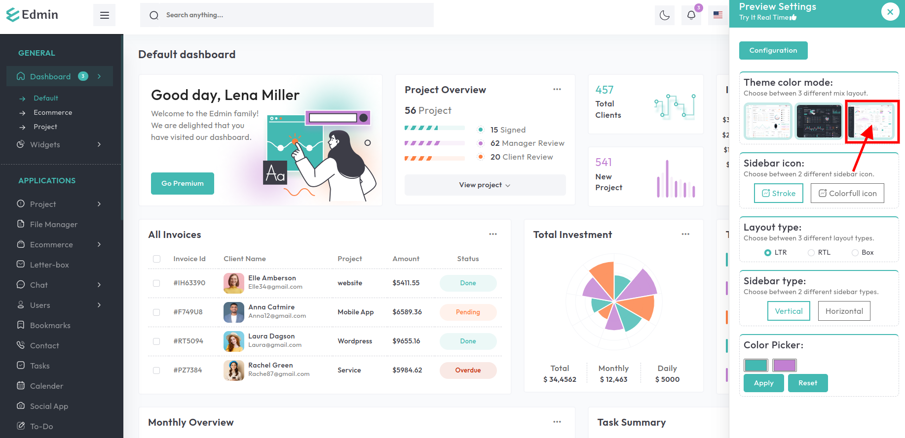 Light Layout With dark sidebar