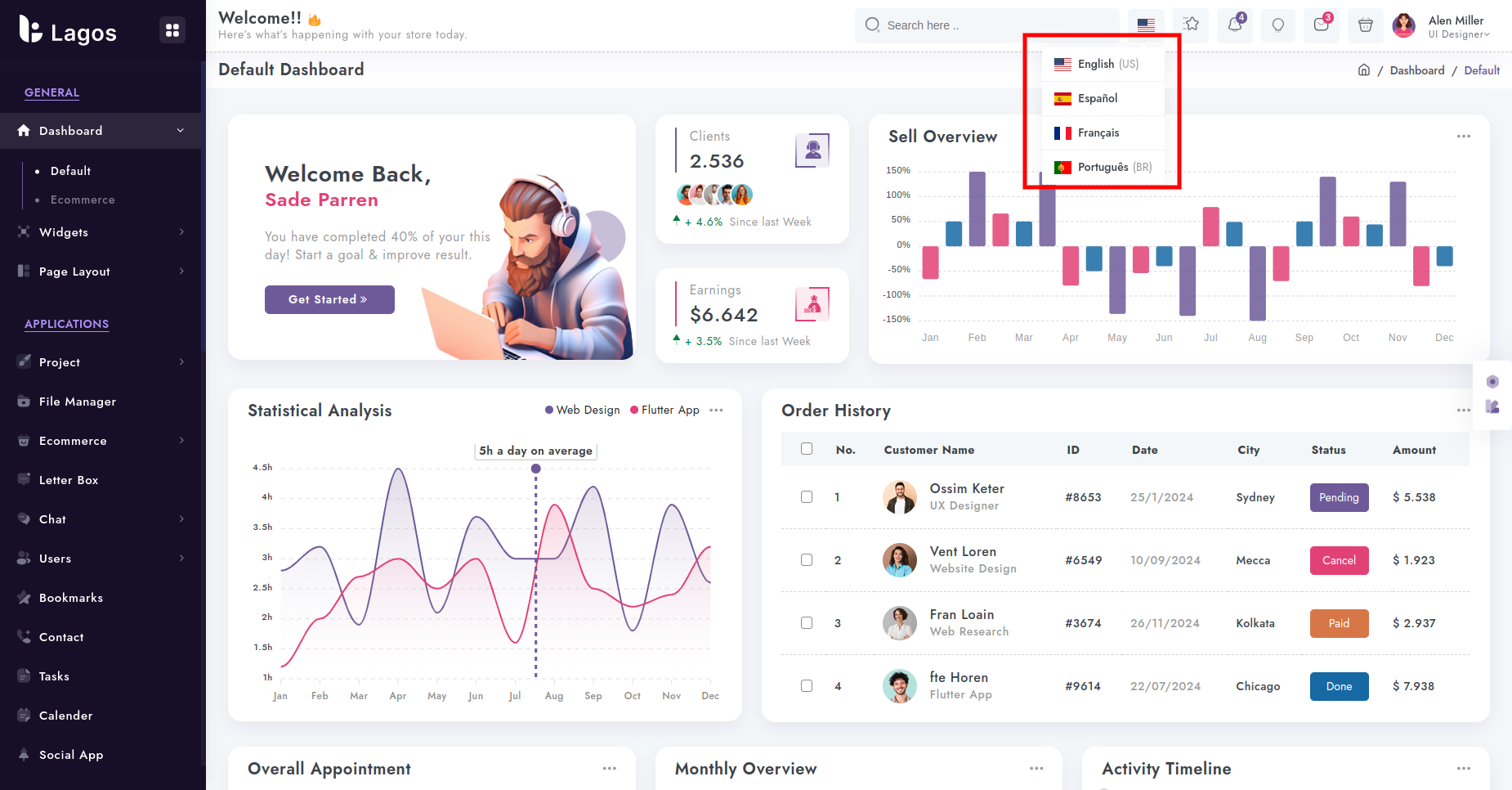 Considering that there will be users from multiple different countries, you might need to add the support for multiple languages.To help you with that, we have made the sidebar compatible with the multiple language functionality.