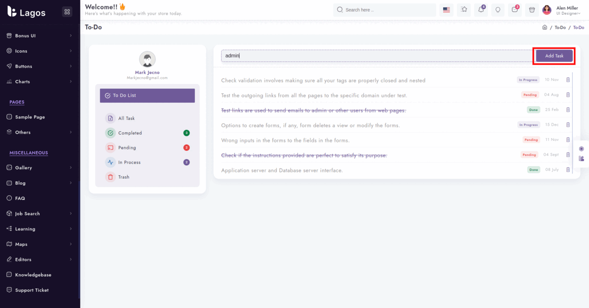 As an admin there are many tasks one have to keep in mind. To keep track of all those tasks, a to-do application has been provided. All the functionalities that a to-do application requires has been already given so the user doesn't have to download and install any other application.