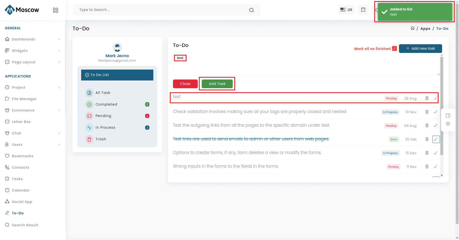 As an admin there are many tasks one have to keep in mind. To keep track of all those tasks, a to-do application has been provided. All the functionalities that a to-do application requires has been already given so the user doesn't have to download and install any other application.
