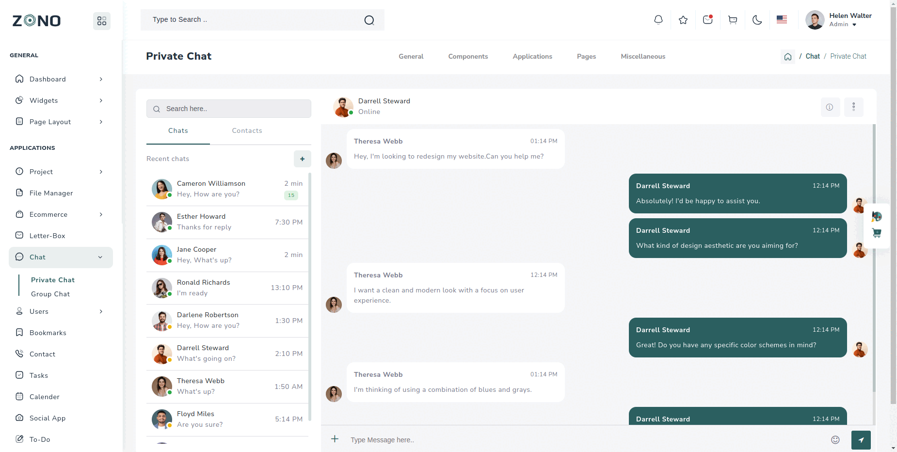 Another application provided with in this theme is chat application. Here we have provided design to create your own chat application. We have kept in mind all basic necessities of the chat application and have created design according to it. You can integrate this design with your backend and make this application fully functional.
