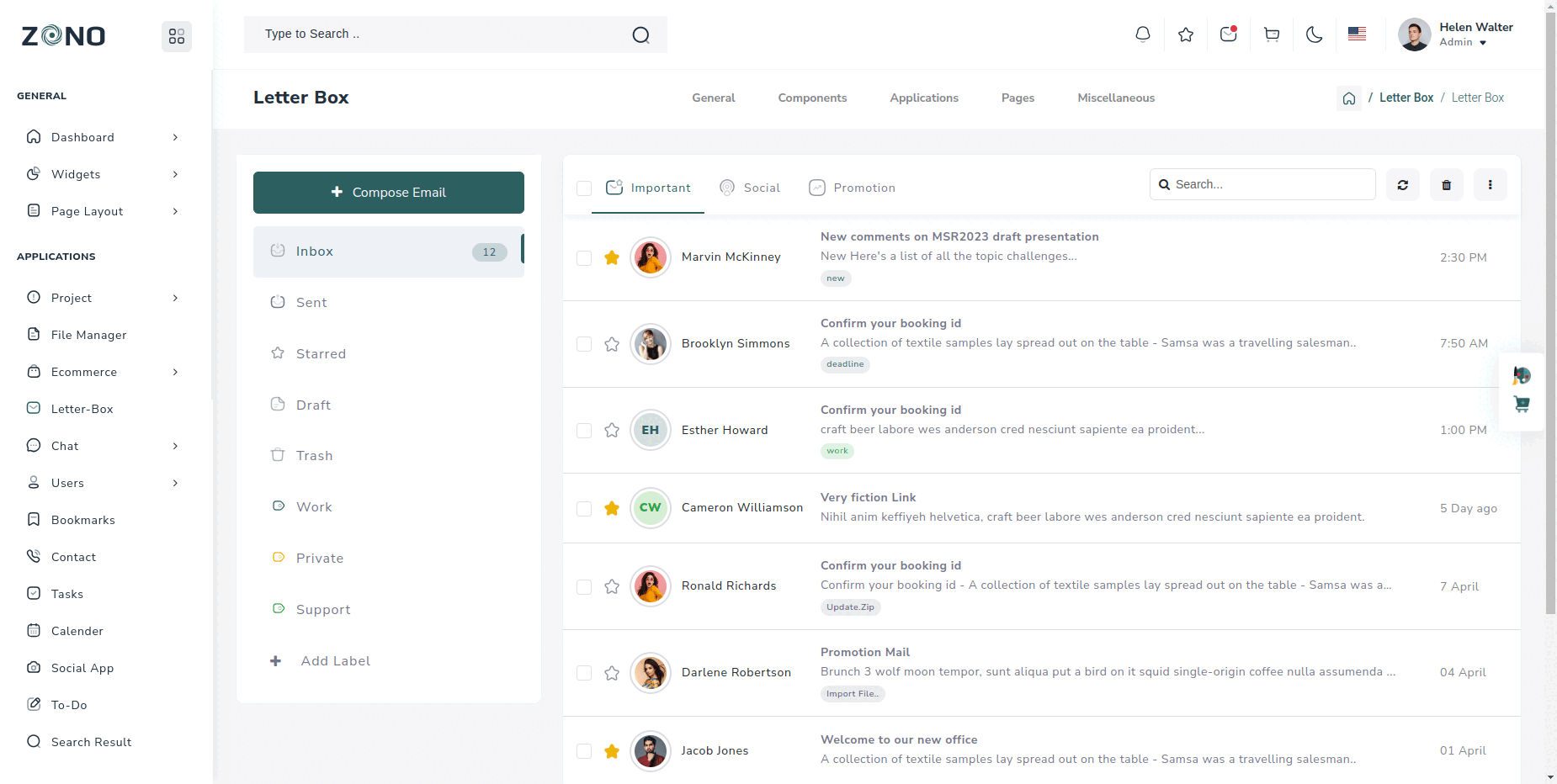 To keep things professional you can add integrate the Letter box application with this theme, to share the important information with your colleagues. We have provided a design for the Letter box application, you can use it and build a fully functional Letter box application.