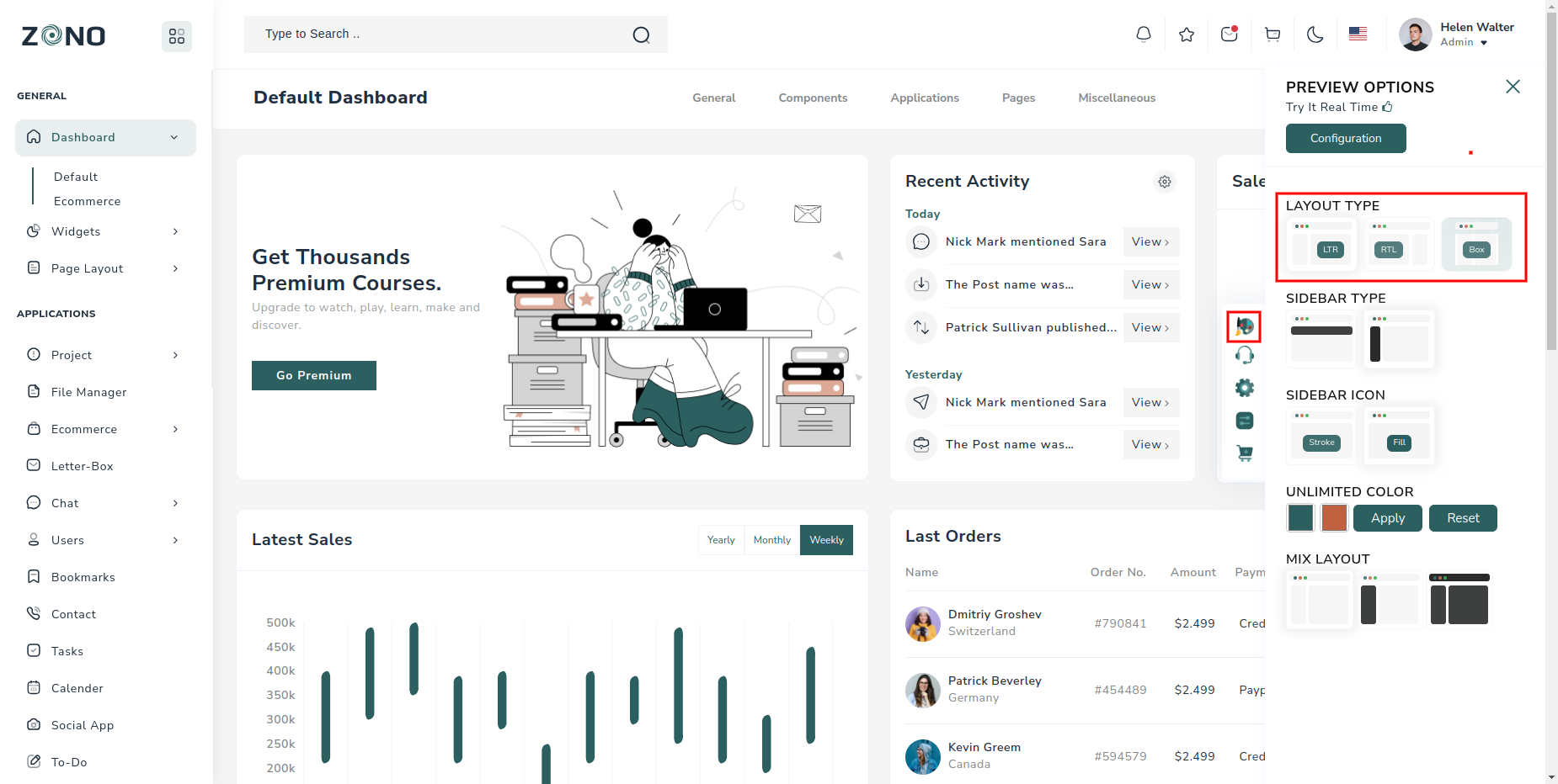 To change the layout type we change the dir value in html tag through the click event on the theme-customizer icons. And according to the dir value, content style will change. Style for all the layout are given in the layouts folder, make sure to include those files in the folder if you are planning to use different layouts.
