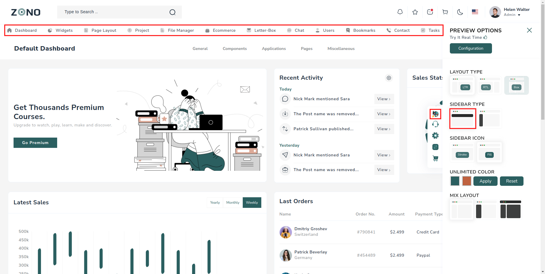 - Horizontal Sidebar
