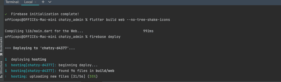 - The hosting files are uploaded and hosted at your Firebase URL. You can follow the link in your terminal to your Flutter web project!