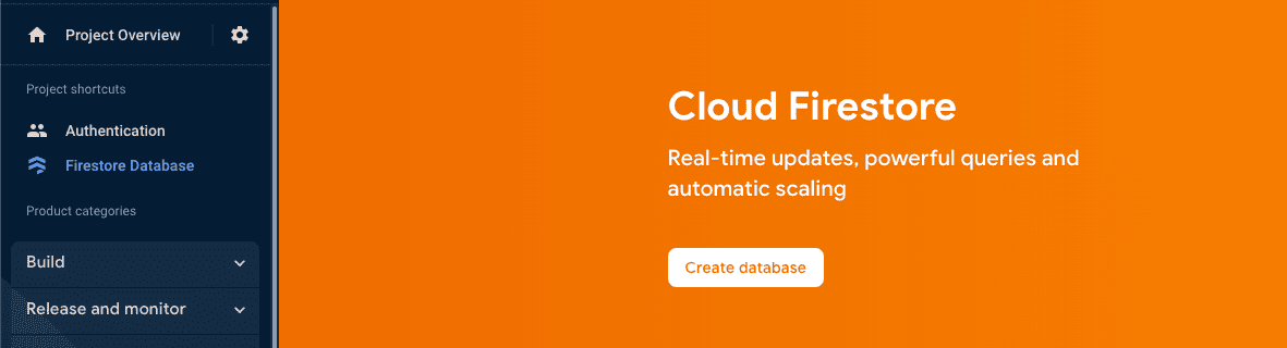 - On left hand side panel,go to build, select Firestore database.