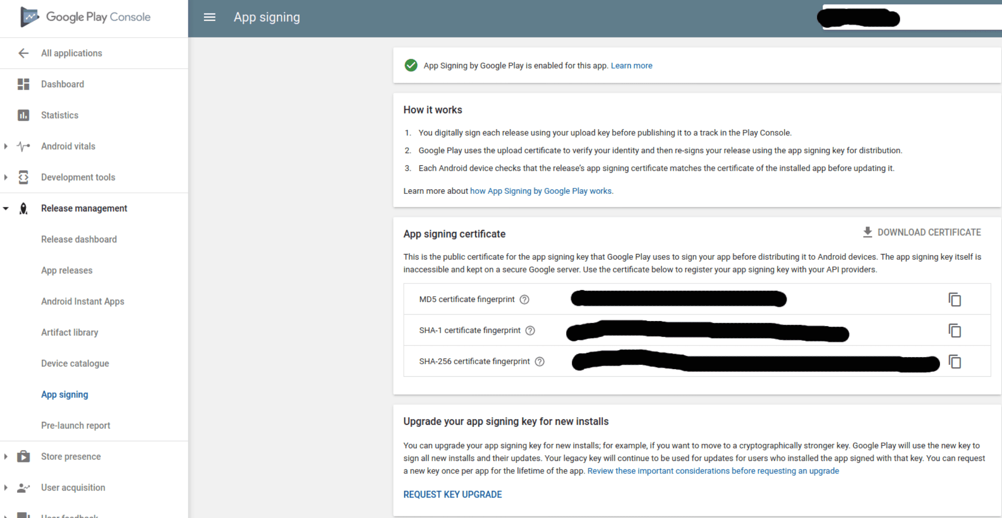 - Generate debug and release SHA1 and SHA26 key and in fingerprint