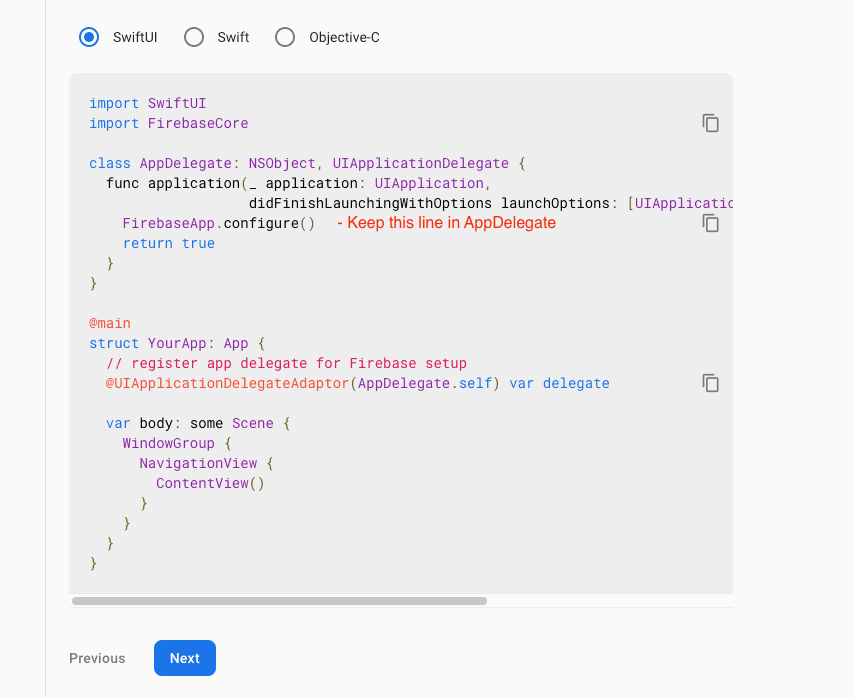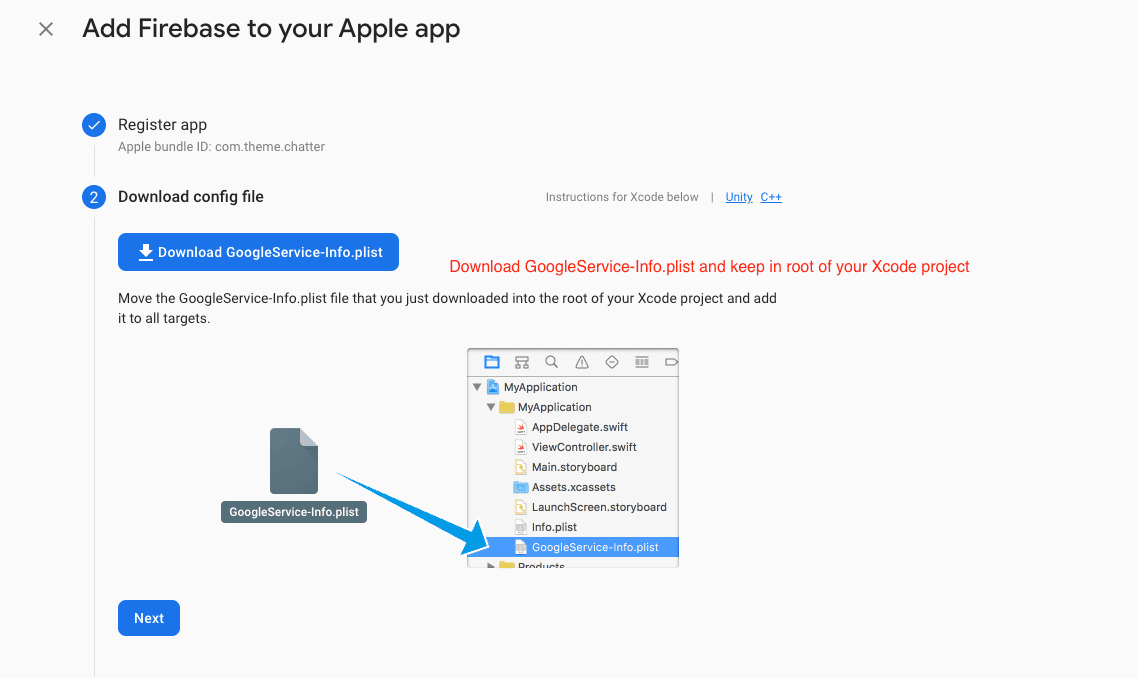- Update "FirebaseApp.Configure()" in AppDelegate File