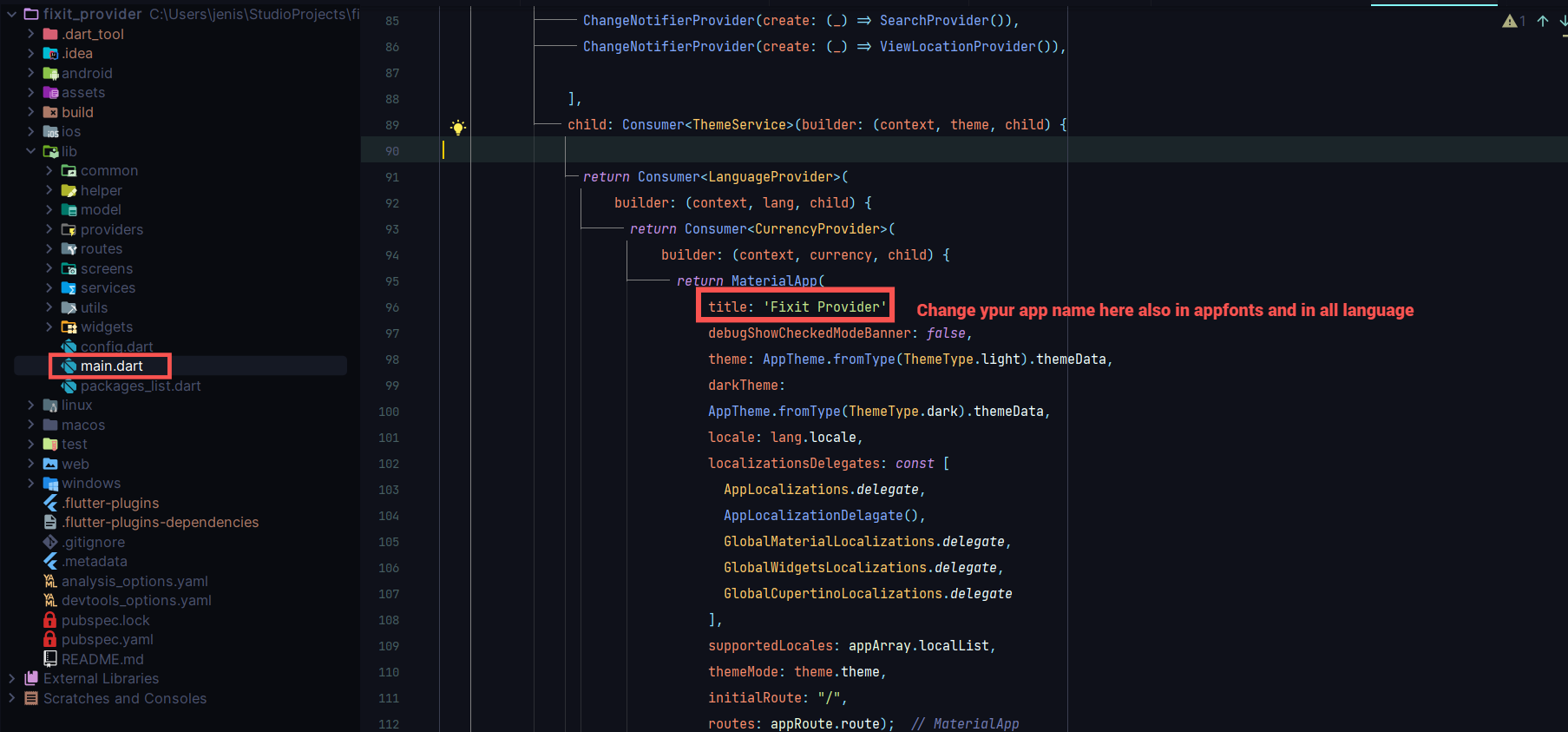 - Change Your title Name in main.dart