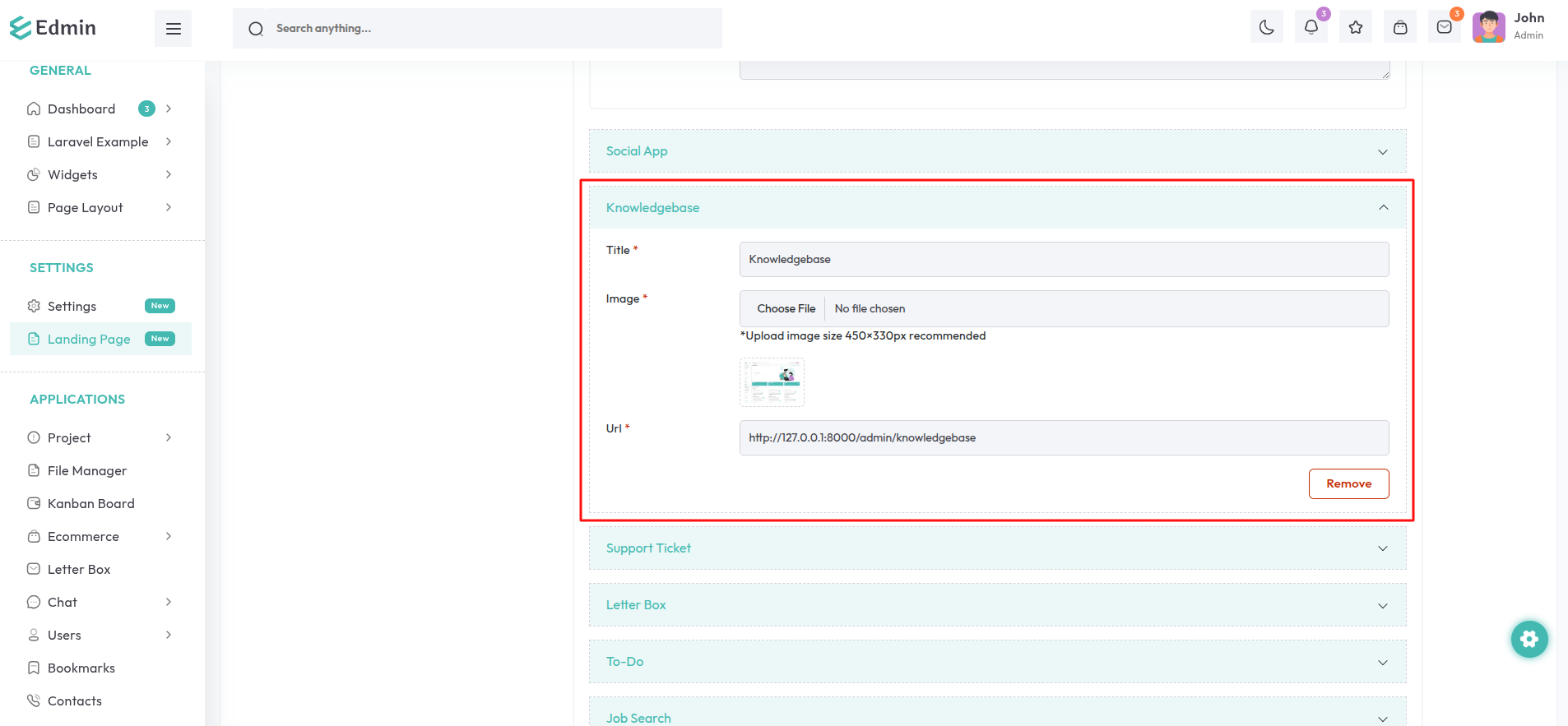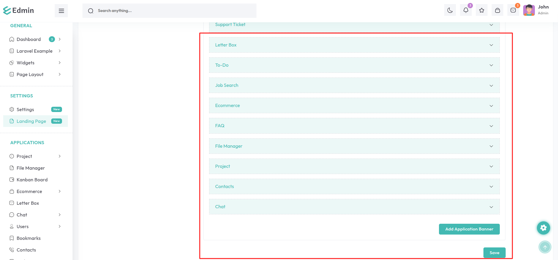 Add Application Banner Button: This button is used to add new application banners to the Applications section, each with customizable details.