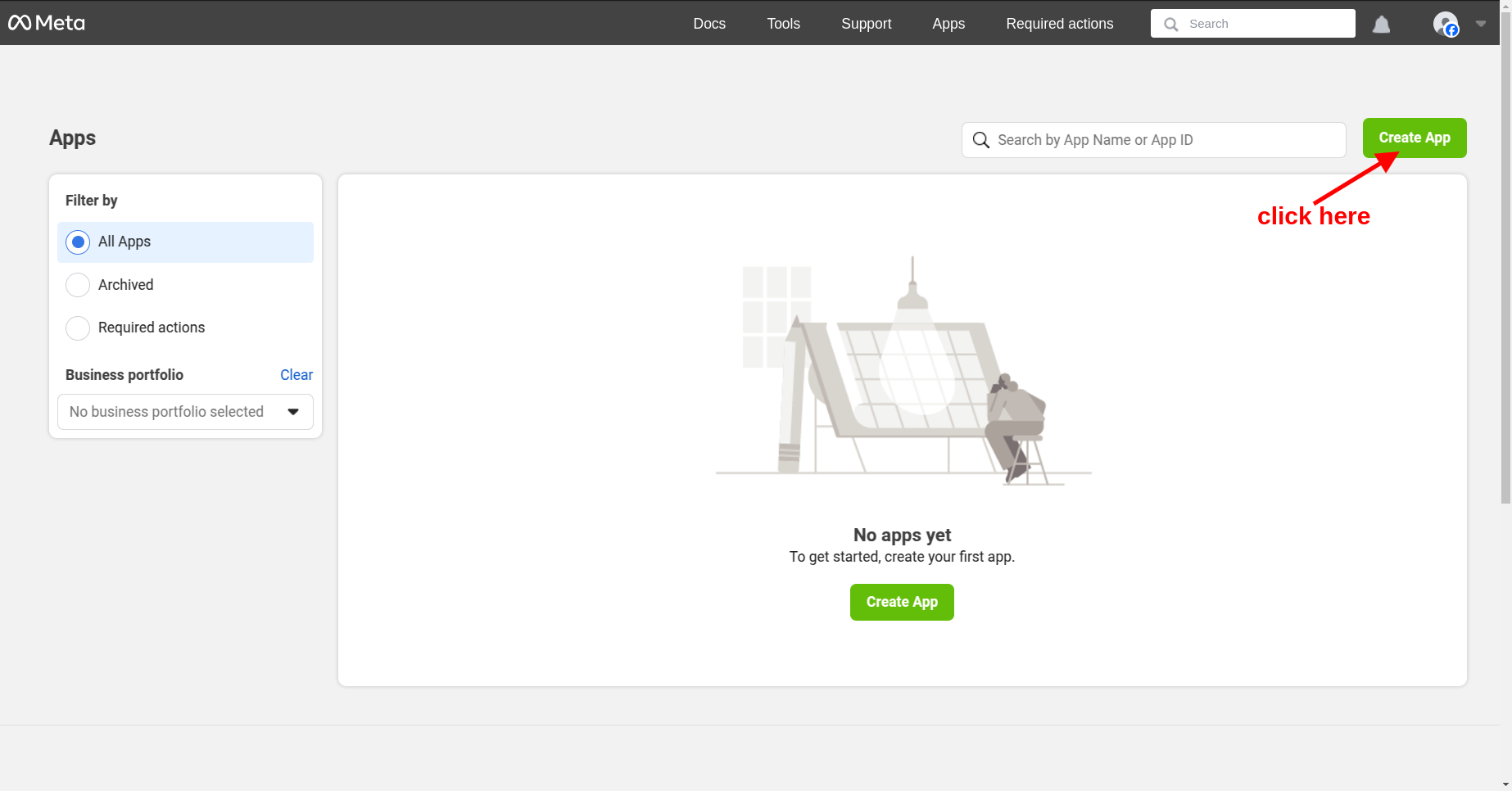4. Click on the Create App.