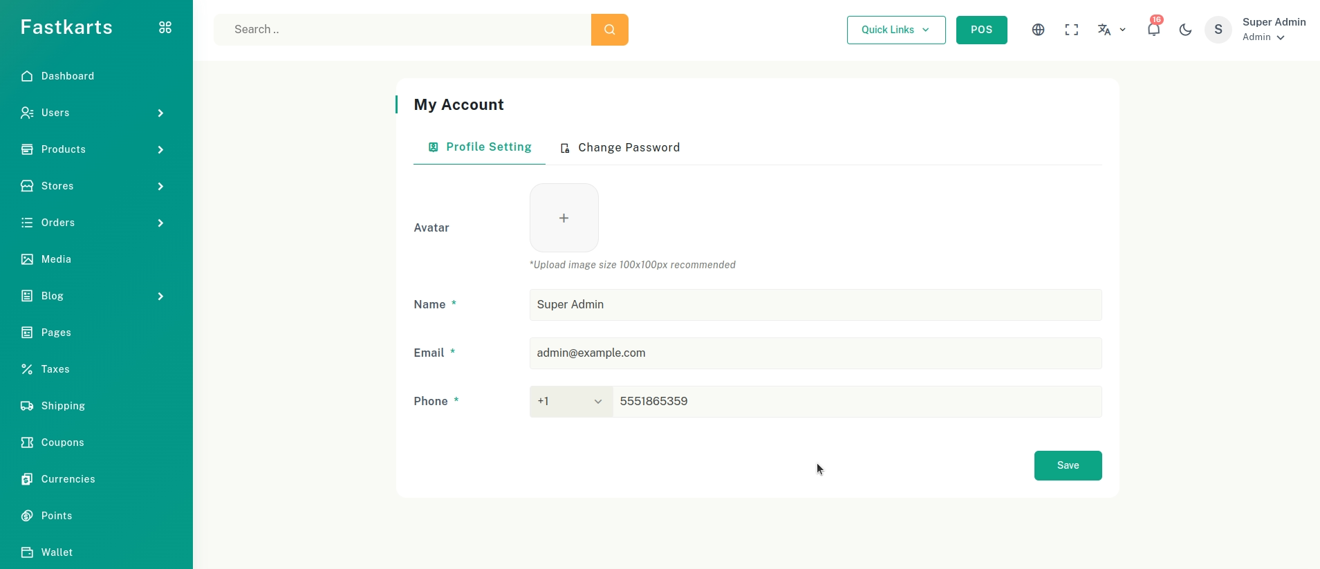 - Remember to click Save to store the changes.