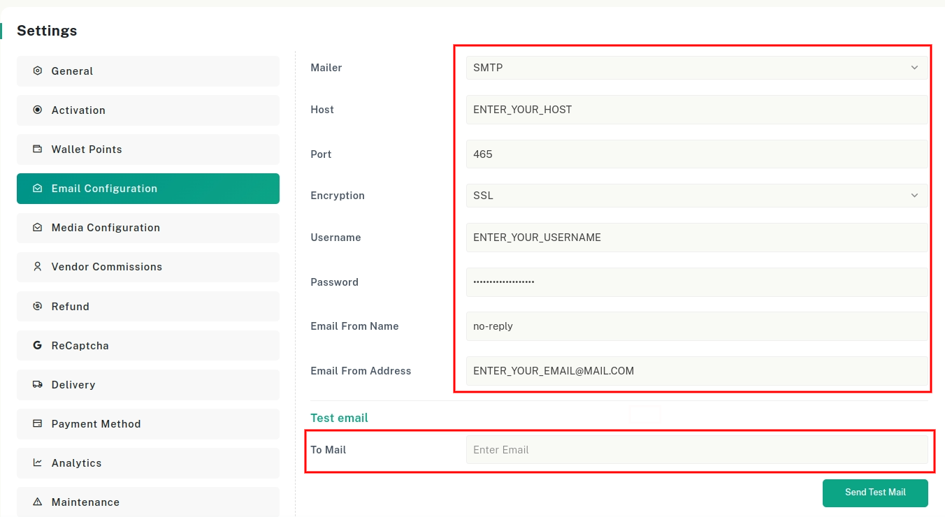 Please ensure all necessary information is provided to ensure successful delivery of the test email. Fill in all required fields accurately to avoid any errors.