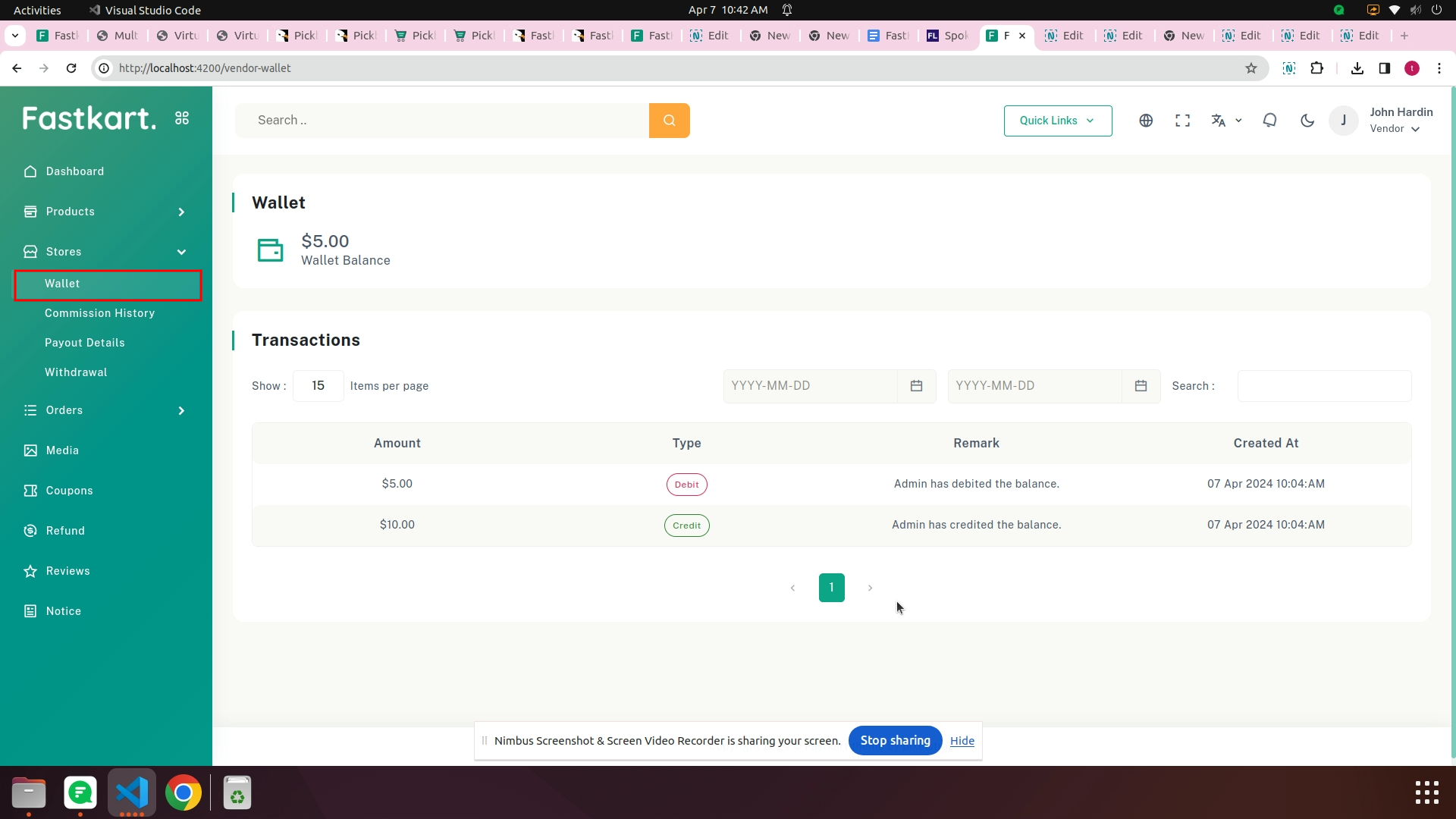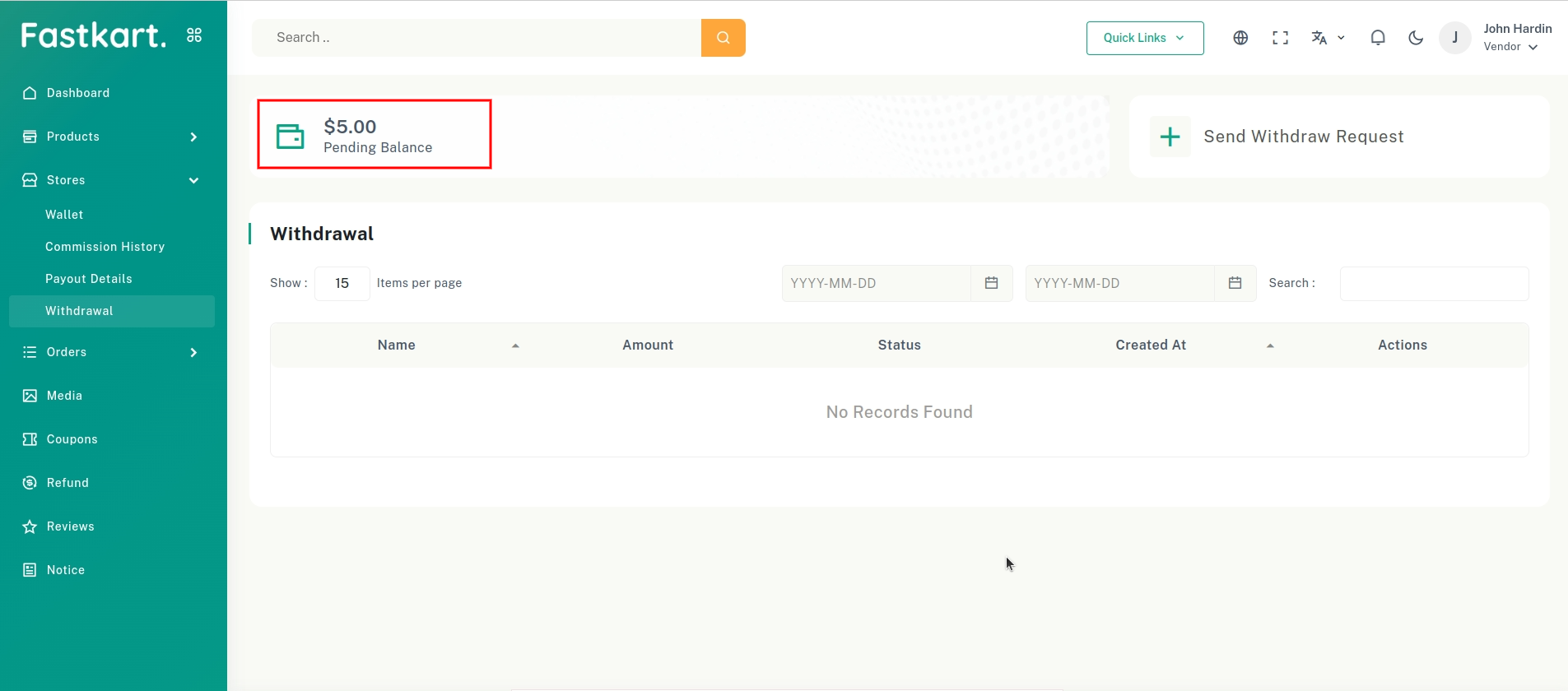 Also, you can view your withdrawal history in the table below. Admin will approve or reject requests.