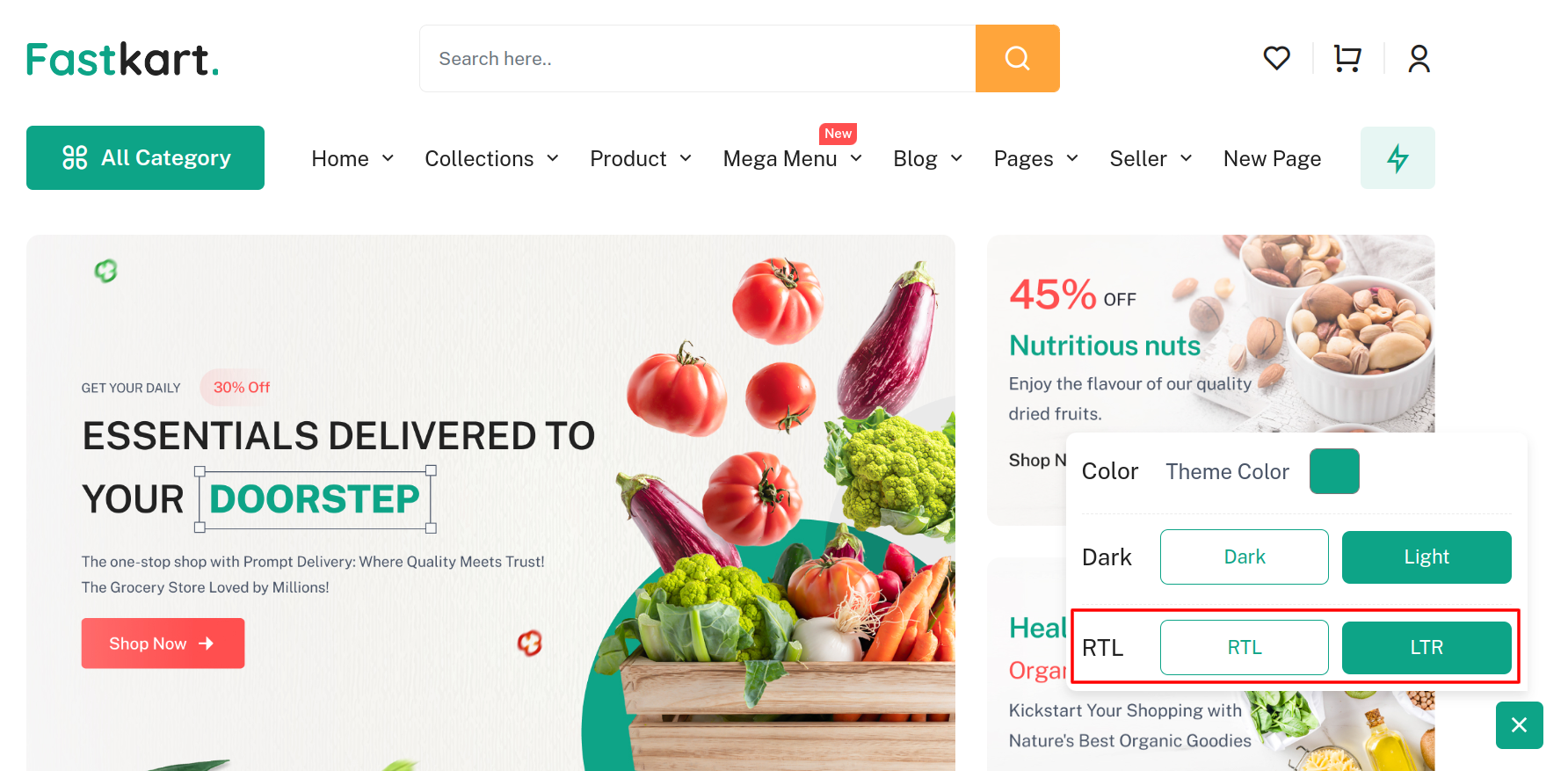 There are 2 layout types in our theme: LTR and RTL layout.