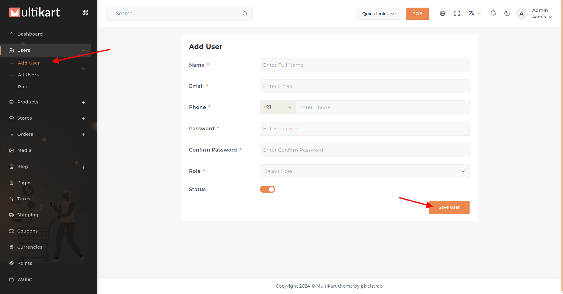 - Navigate to the "Users" section, click "Add Users," enter user details: