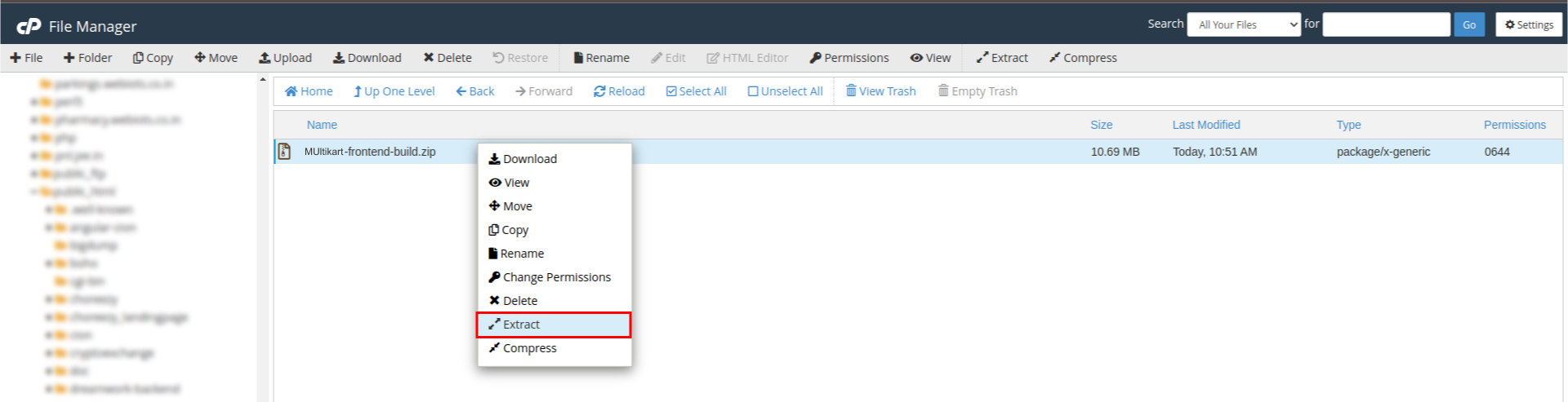 - Upload the multikart-laravel zip file in the laravel's subdomain (api.your-domain.com).