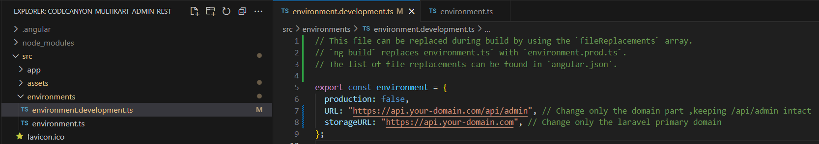 Open the environment.prod.ts file in your code editor by going to src > environments > environment.prod.ts and adjust the URL based on the reference image.