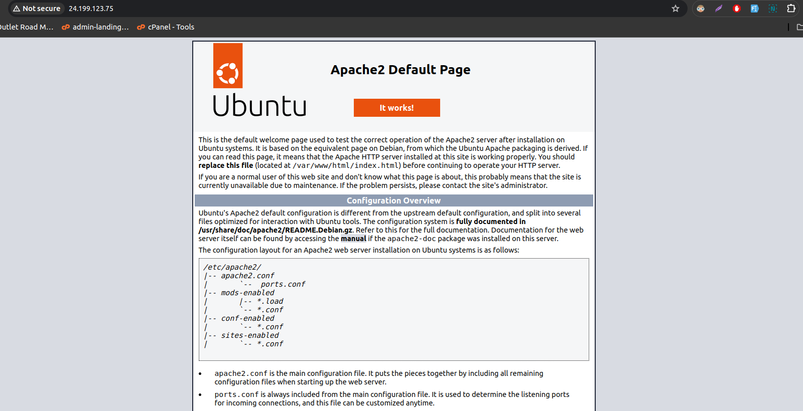 - Open this IP address in your browser, If you can view this page, your web server is correctly installed and accessible through your firewall.