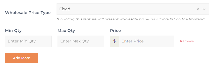 Enter specify the minimum and maximum quantity requirements. Additionally, if selecting fixed provide the price; if selecting percentage specify the percentage.