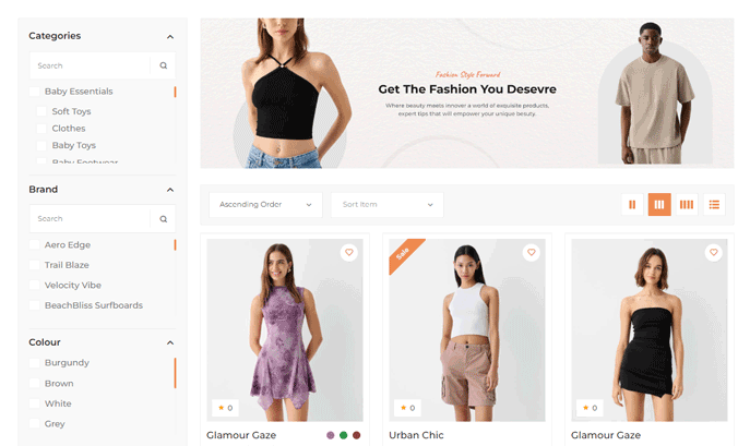 To showcase products uniquely, choose from 5 layout variations. Enable the below options as well to view products in a box layout for easy browsing.