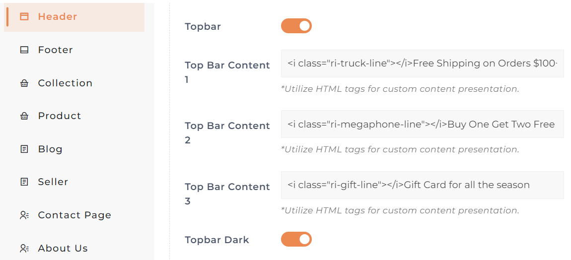 Page Top Bar Configuration