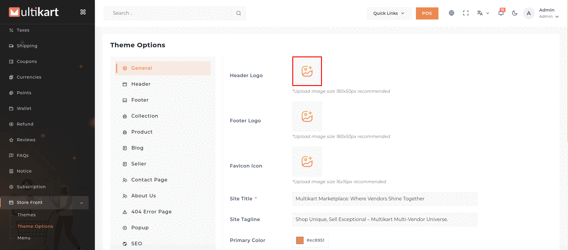 Set Header Logo, Footer Logo And Favicon Icon