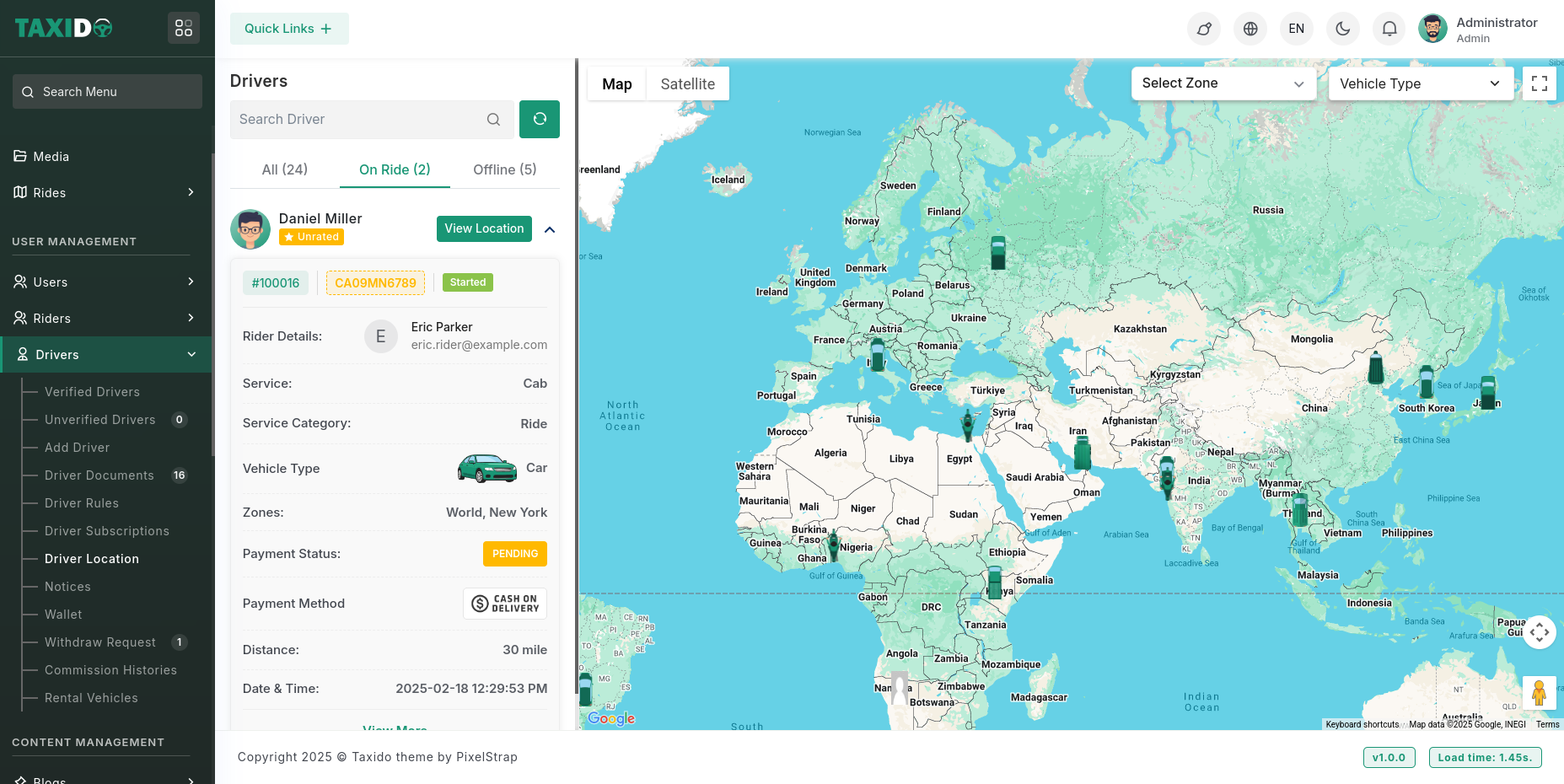 - Zone: Enables filtering of drivers based on the selected zone.