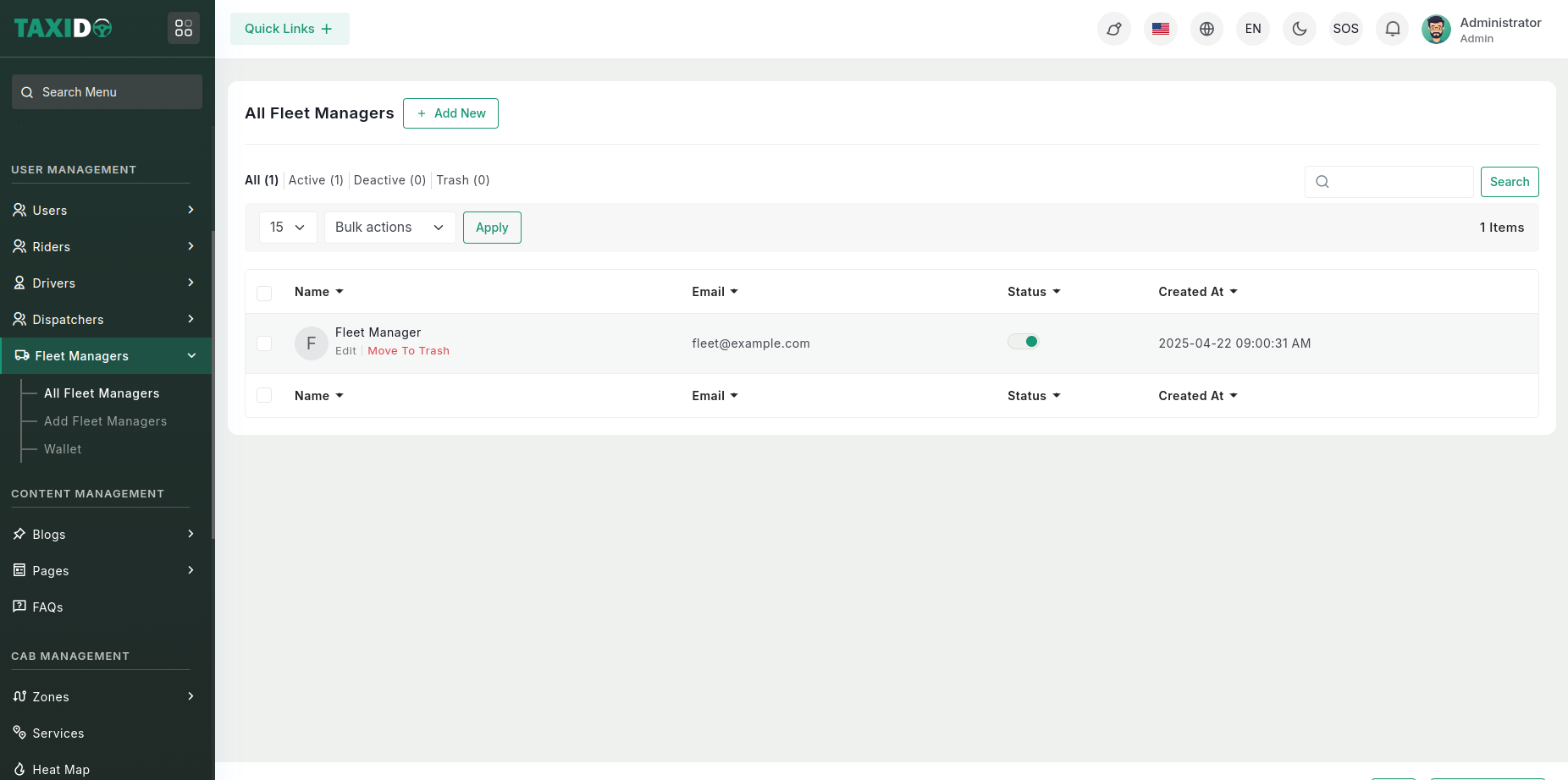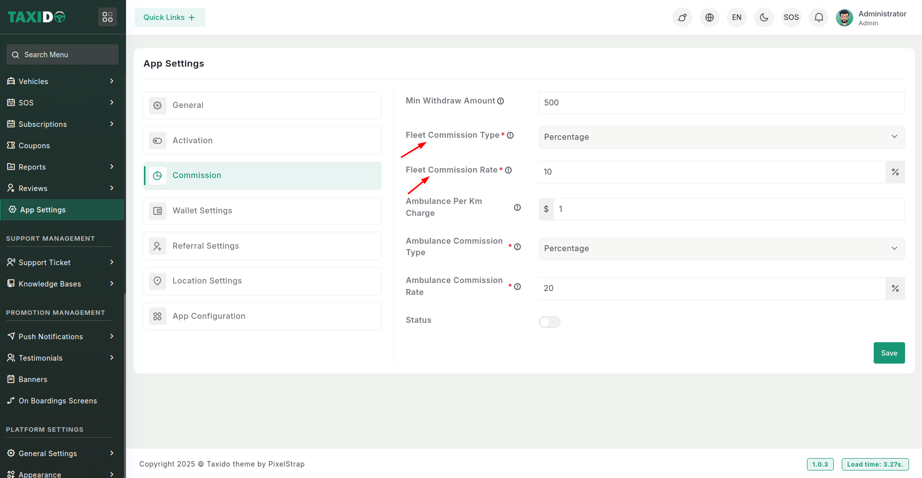 Based on this setting, the system dynamically calculates the fleet manager’s commission per ride.