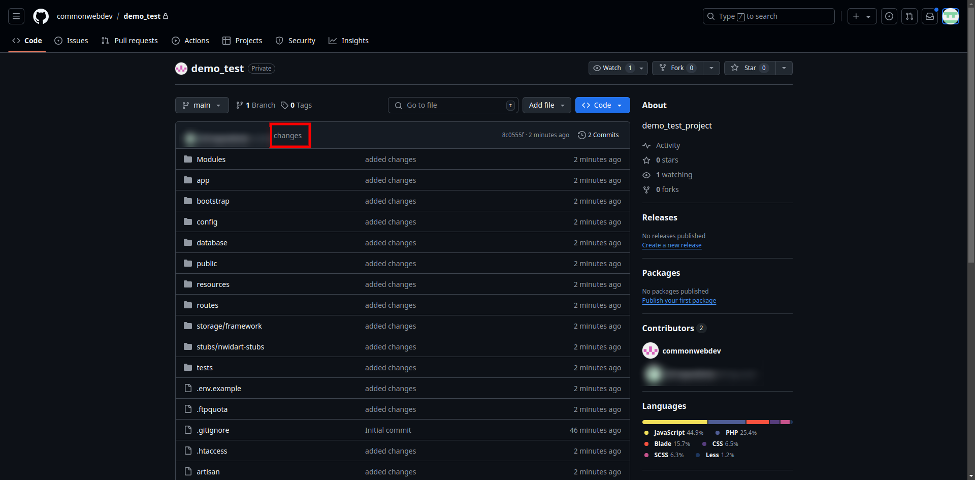 - Now click on Changes for check total number for file changes and which files has been changed.