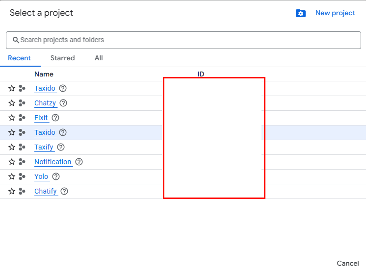 If a project exists, select it.