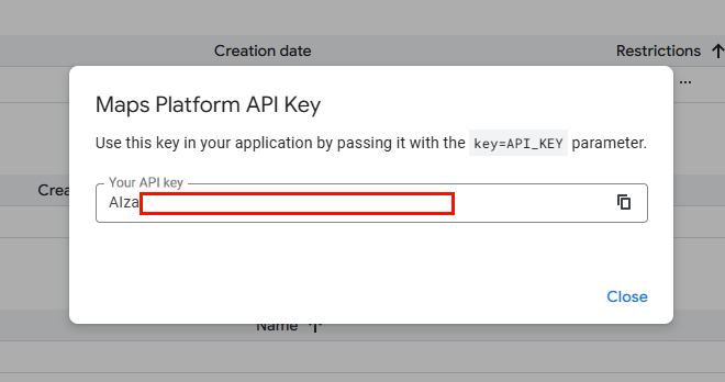 Map API Key in the