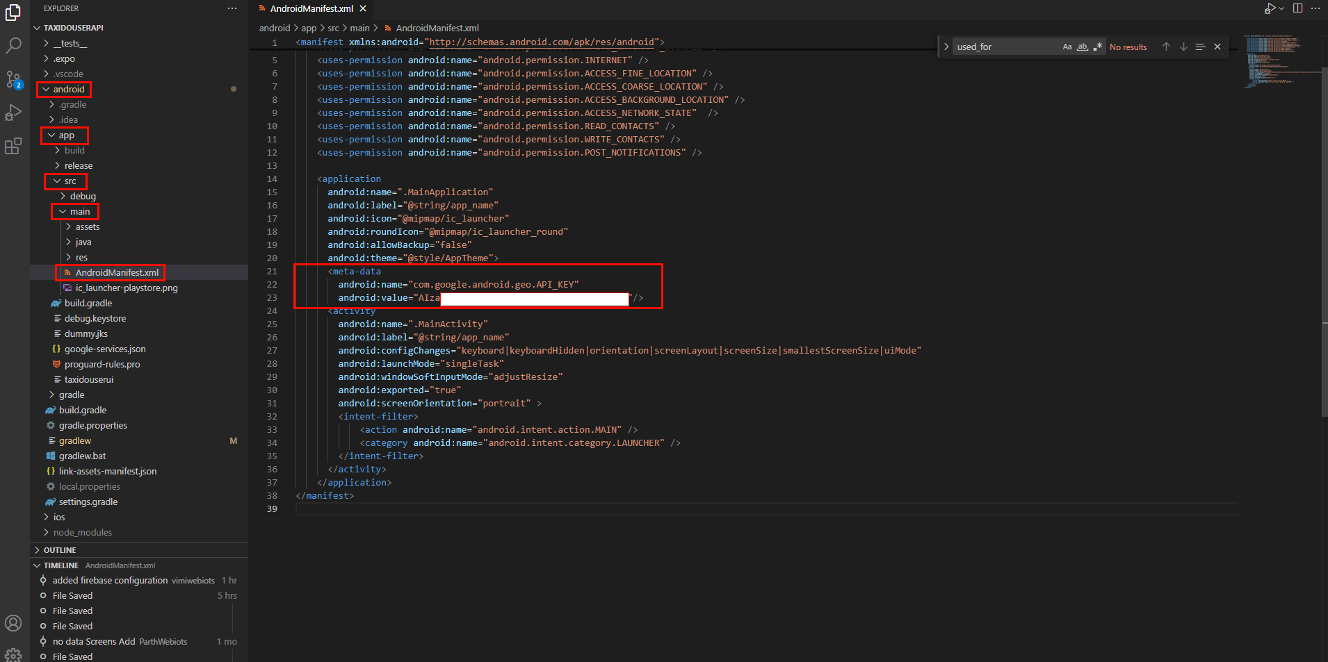 - Navigate to the `AndroidManifest.xml` file in your User App and Driver App under `android ->