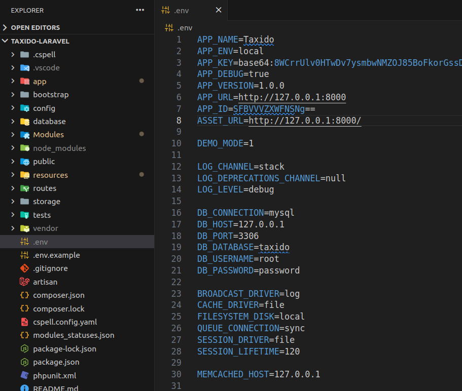 - In the Taxido_laravel folder, run following command in the terminal to install the required dependencies.