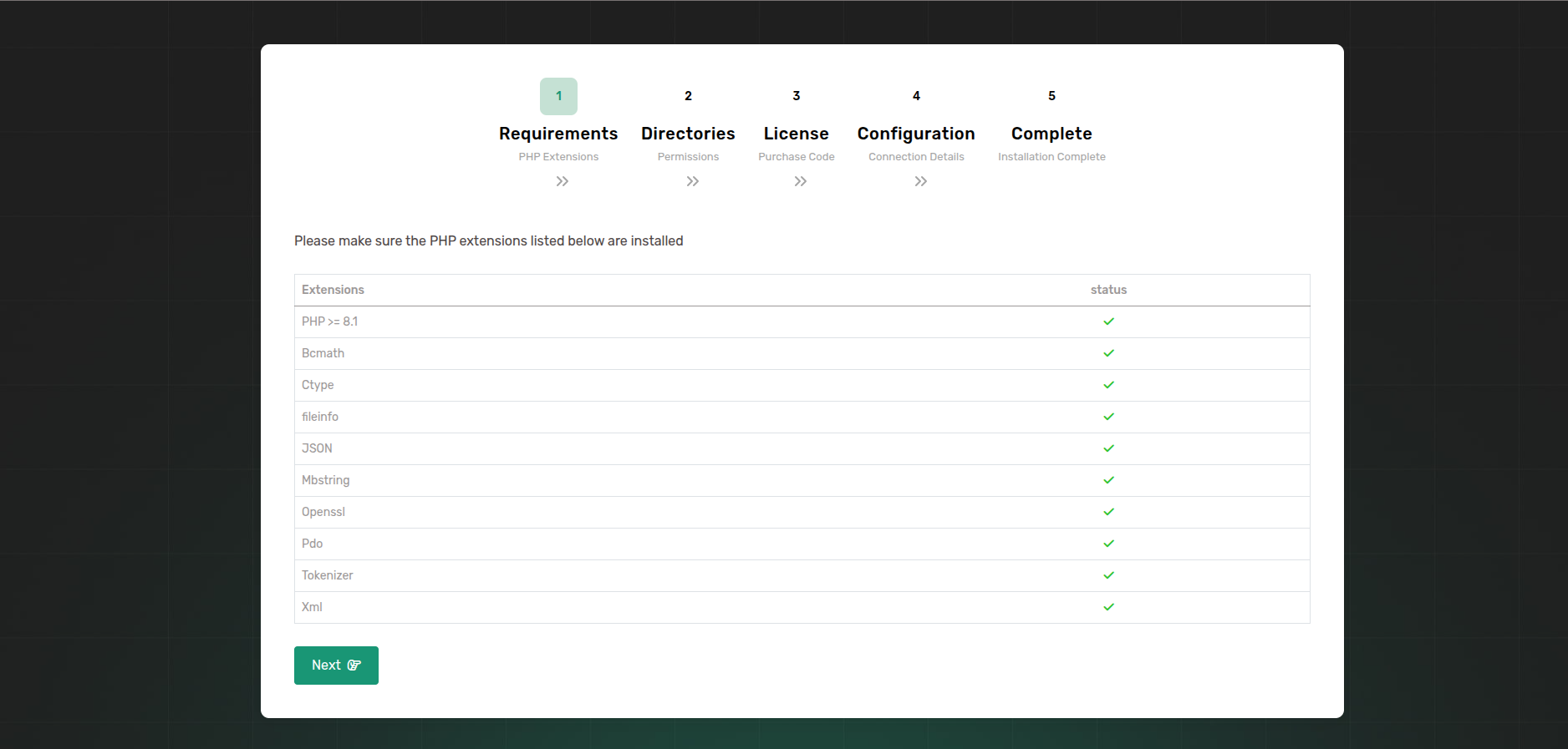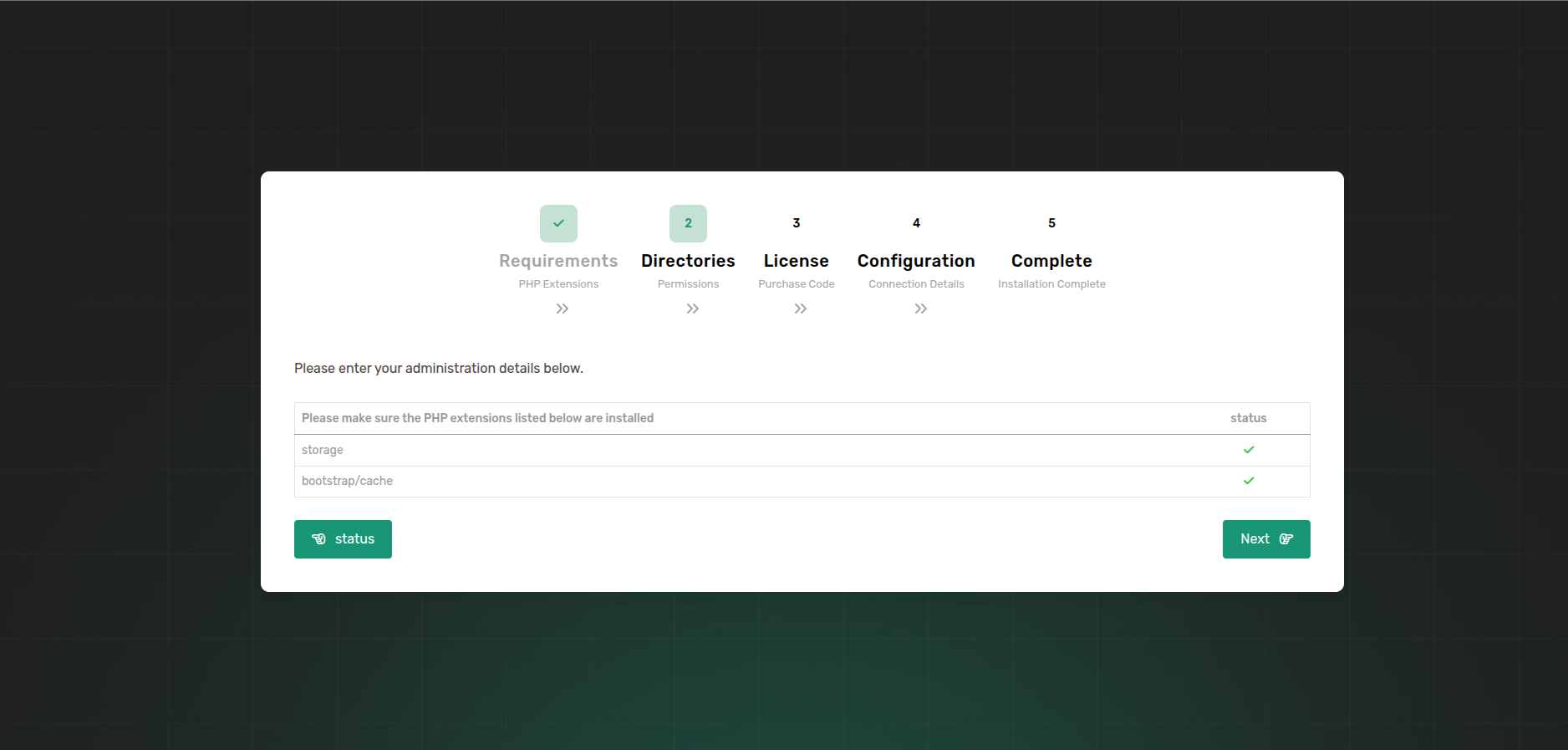 - Step 2: Once all the required PHP extensions are installed, proceed to the next step to check permissions for specific folders to ensure they are allowed.