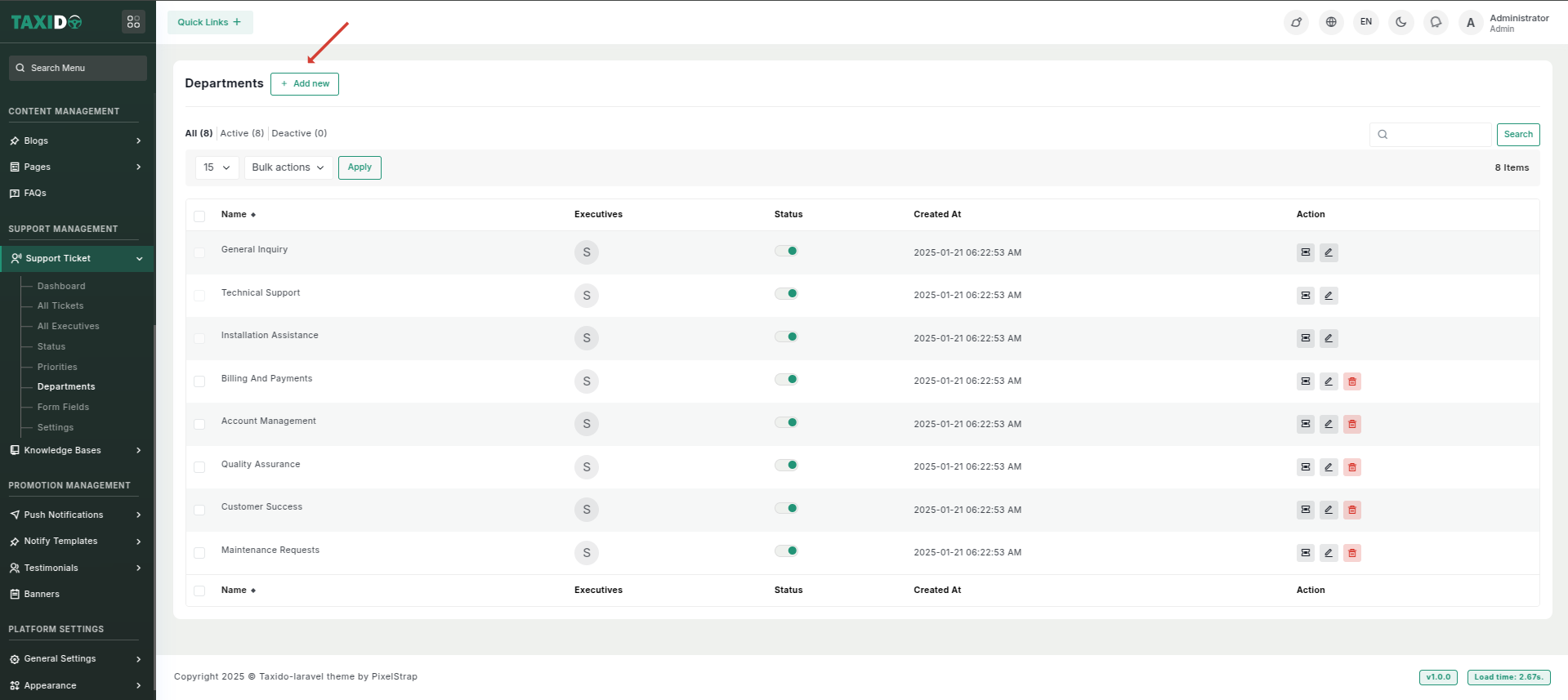- Find the department you want to edit and click the Edit button from the Action Column.