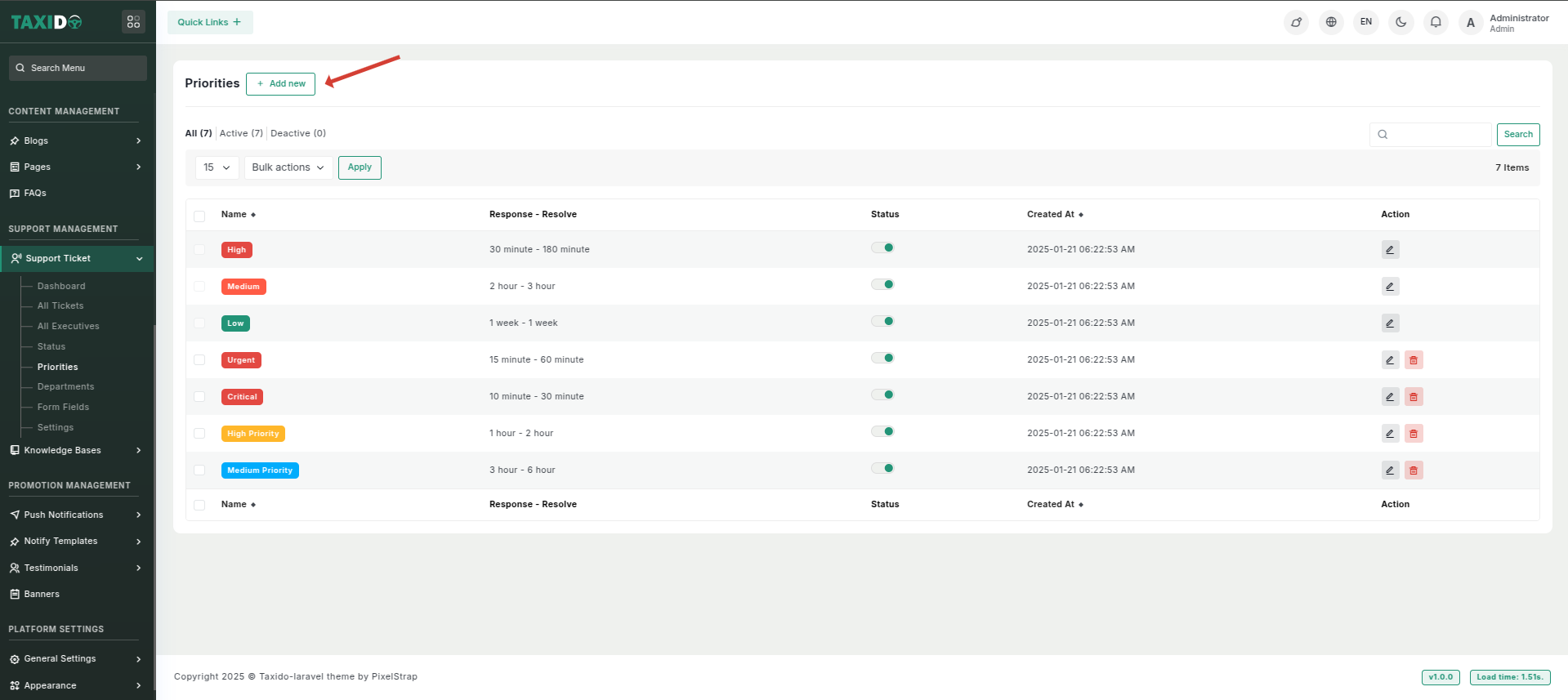 - Find the priority you want to edit and click the Edit button from the Action Column.