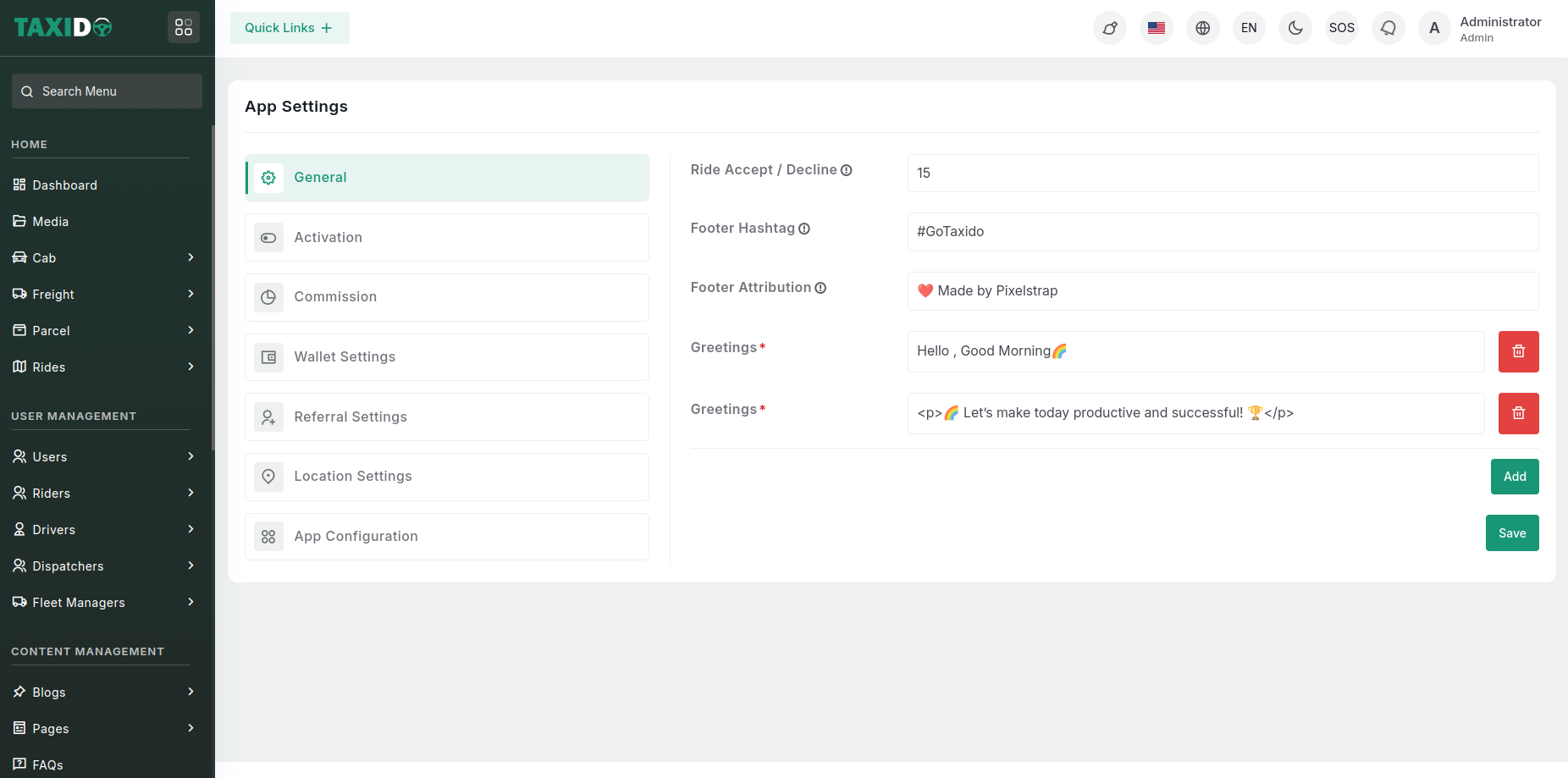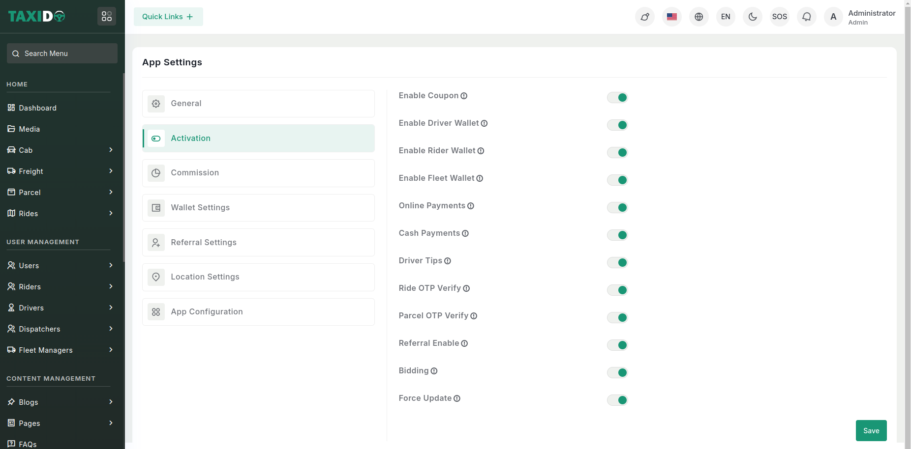 - Referral Enable: Allows drivers or passengers to earn rewards