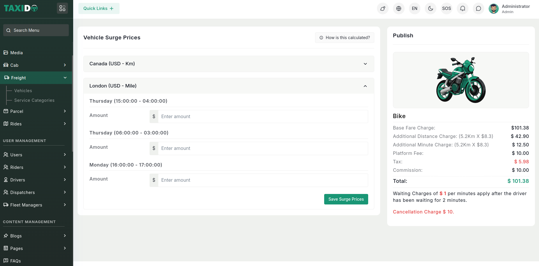 - Time Slot - Defines the specific time period for applying the surge price (e.g., Thursday 15:00 - 04:00).