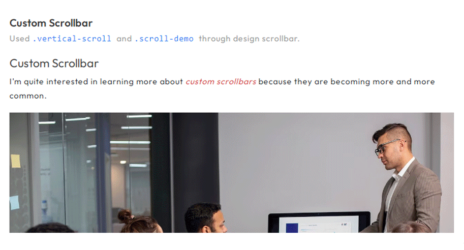 <p>One crucial point to remember is that, depending on the design, a scrollbar may operate either <em className="txt-danger">horizontally or vertically</em> . Additionally, it might alter when you work on a website that is global and operates in both left-to-right and right-to-left orientations.</p>
