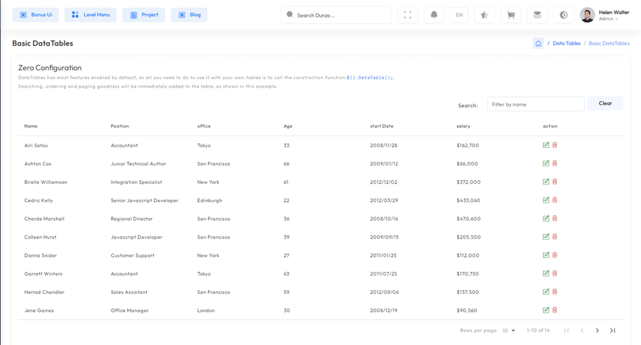 <DataTable data={ZERO_CONFIGURATION_DATA} columns={ZERO_CONFIGURATION_COLUMN} pagination highlightOnHover striped />