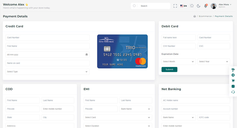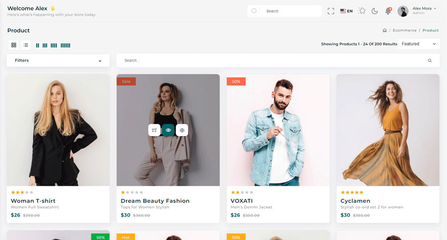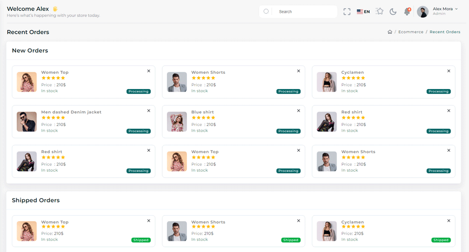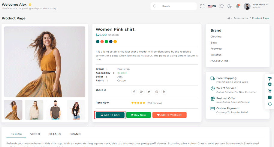 You can directly use complete E-commerce app to manage your E-commerce with ready-made functionality of Add to cart,Quick-view, and Checkout with Stripe as well as Paypal. Apart from that if you want to use it in your frontend application then you just need to change your json with your API data and you get complete workable E-commerce for your frontend.