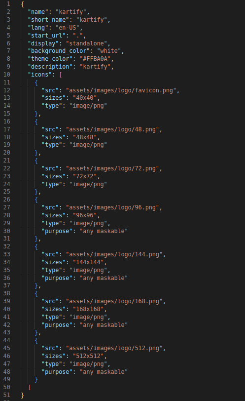You will find this file in main folder where you can change the configuration. It describes the name of the app, the start URL, icons, and all of the other details necessary to transform the website into an app-like format.