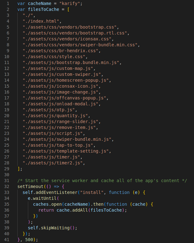A service worker is a script that allows intercepting and control of how a web browser handles its network requests and asset caching. Here you can attached the css and js files.
